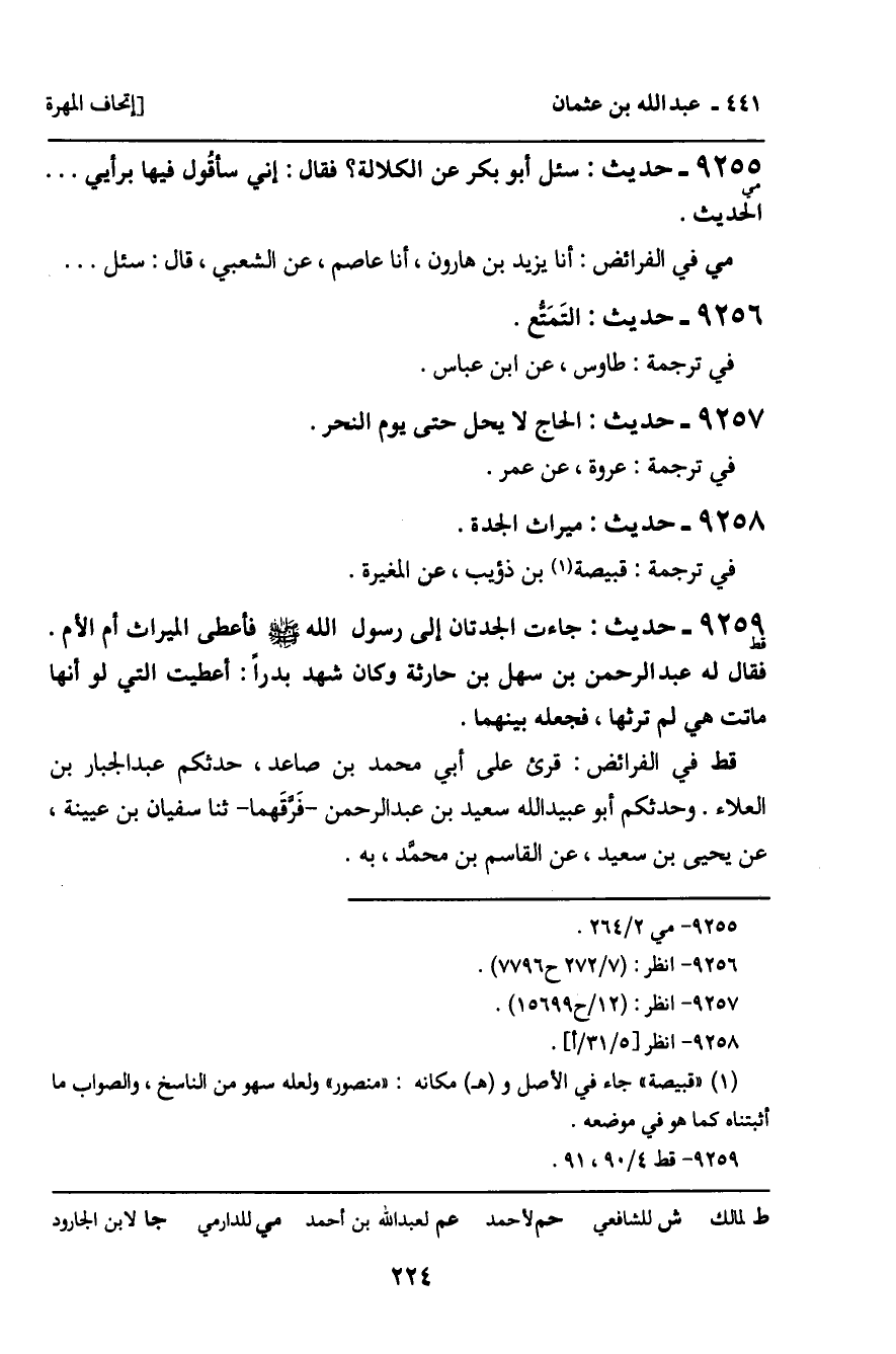 9258 - حَدِيثُ: " مِيرَاثِ الْجَدَّةِ. " الْحَدِيثَ.