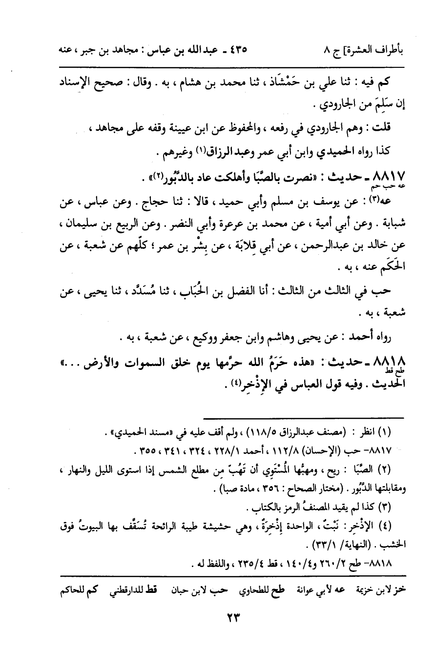 8817 - حَدِيثُ حب حم: " نُصِرْتُ بِالصَّبَا وَأُهْلِكَتْ عَادٌ بِالدَّبُورِ " الْحَدِيثَ.