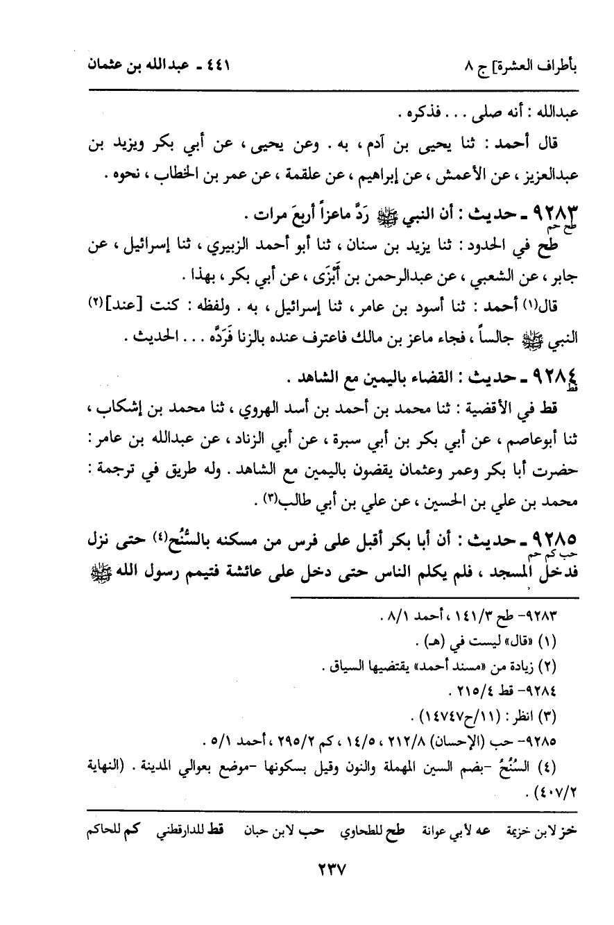 9283 - حَدِيثُ حم: " أَنَّ النَّبِيَّ صَلَّى اللَّهُ عَلَيْهِ وَسَلَّمَ رَدَّ مَاعِزًا أَرْبَعَ مَرَّاتٍ " الْحَدِيثَ.