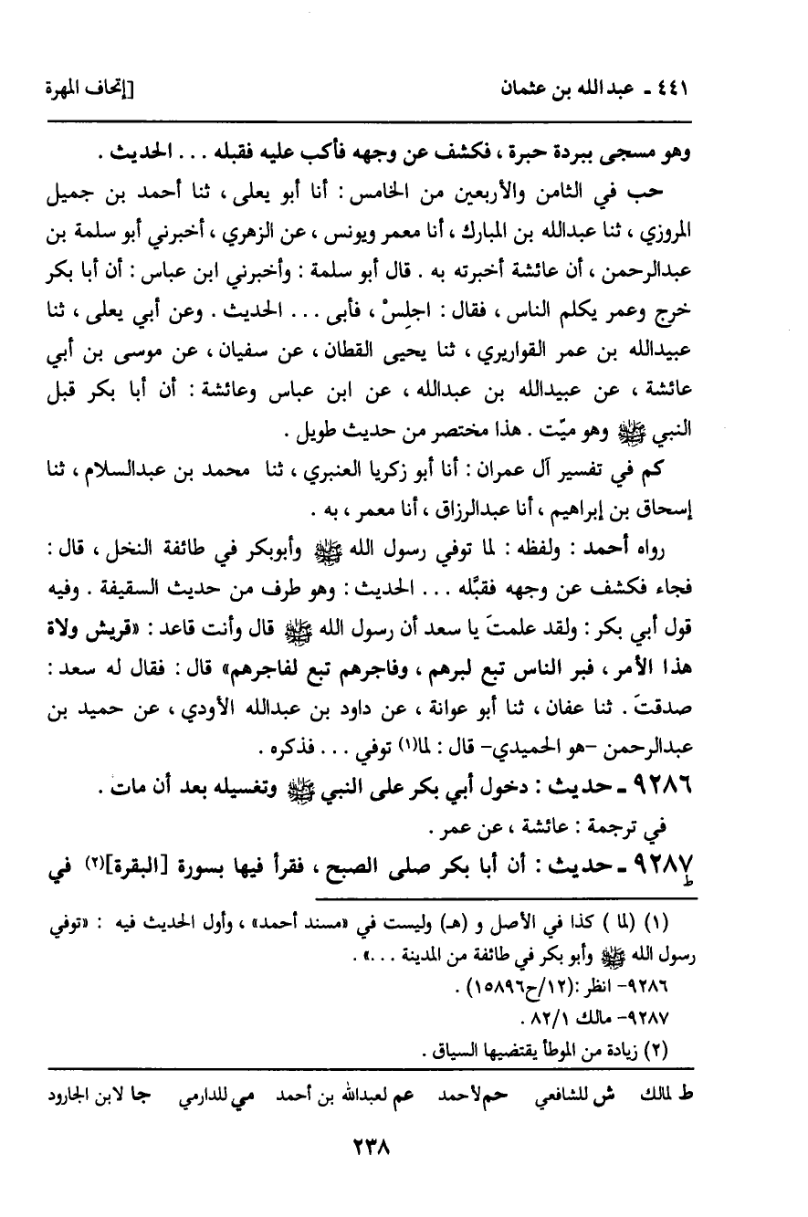9287 - حَدِيثُ ط: " أَنَّ أَبَا بَكْرٍ صَلَّى الصُّبْحَ، فَقَرَأَ فِيهَا بِسُورَةِ الْبَقَرَةِ فِي