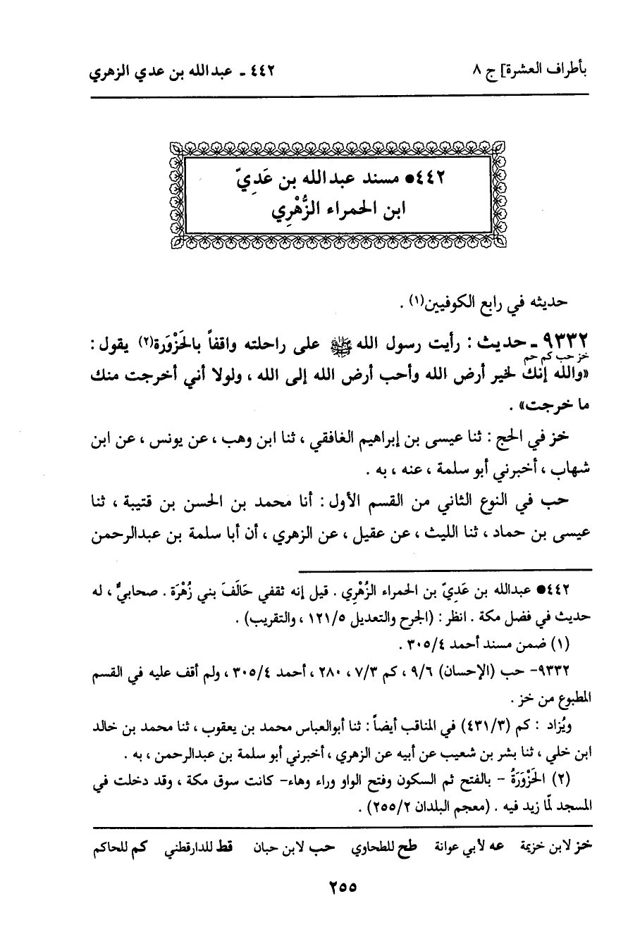 442 ـ مسند عَبْدِ اللَّهِ بْنِ عَدِيِّ ابْنِ الْحَمْرَاءِ الزُّهْرِيِّ