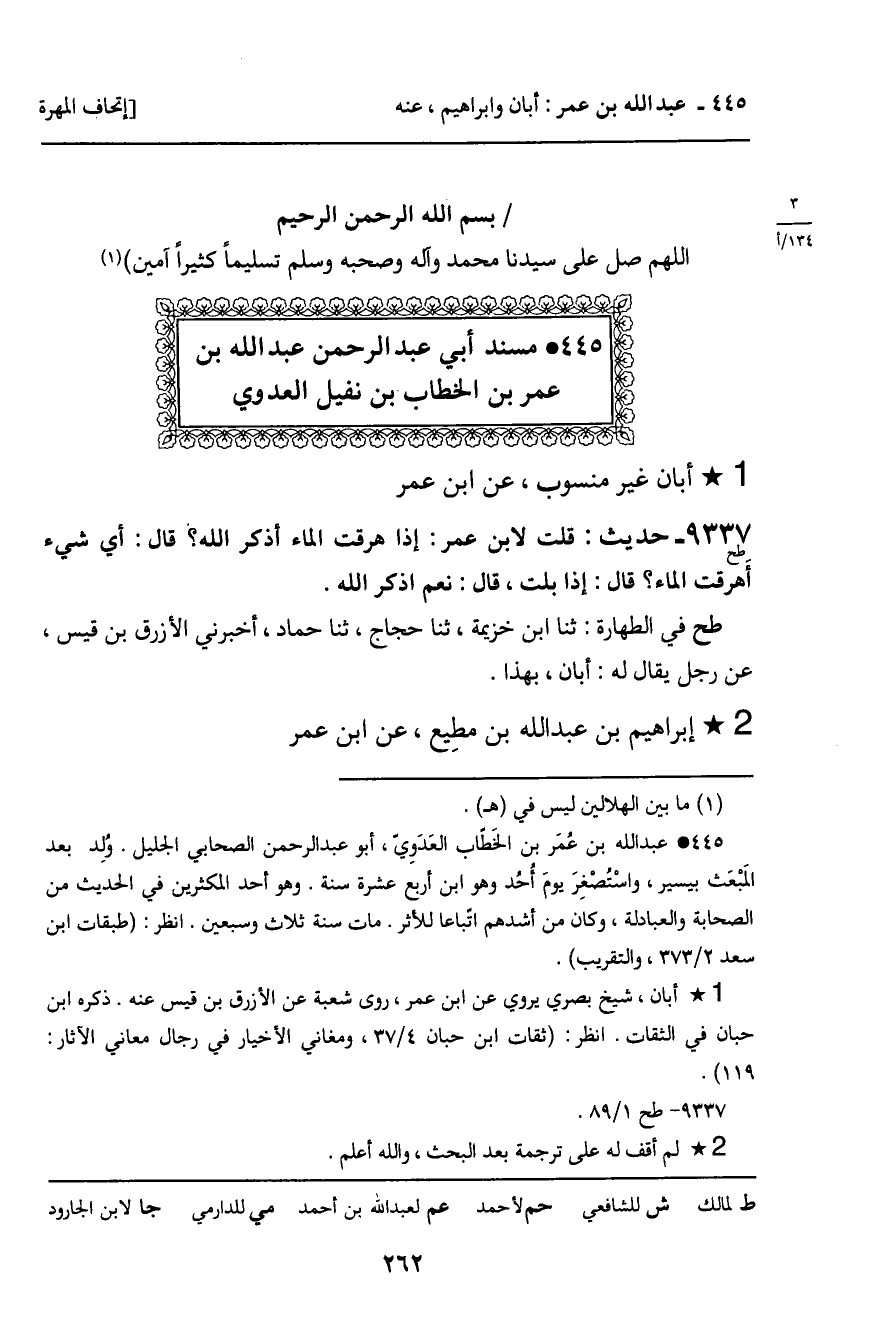 445 ـ مسند أَبِي عَبْدِ الرَّحْمَنِ عَبْدِ اللَّهِ بْنِ عُمَرَ بْنِ الْخَطَّابِ بْنِ نُفَيْلٍ الْعَدَوِيِّ
