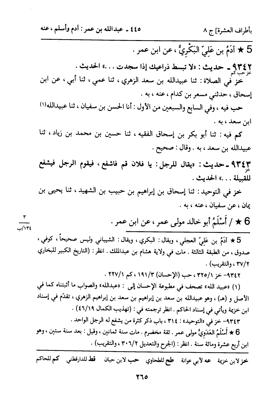 9342 - حَدِيثُ خز حب كم: " لا تَبْسُطْ ذِرَاعَيْكَ إِذَا سَجَدْتَ. . . " الْحَدِيثَ.