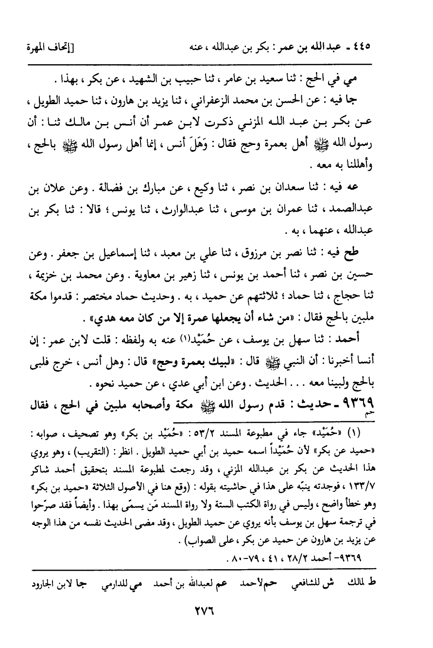 9369 - حَدِيثُ حم: " قَدِمَ رَسُولُ اللَّهِ صَلَّى اللَّهُ عَلَيْهِ وَسَلَّمَ مَكَّةَ وَأَصْحَابُهُ مُلَبِّينَ فِي الْحَجِّ، فَقَالَ