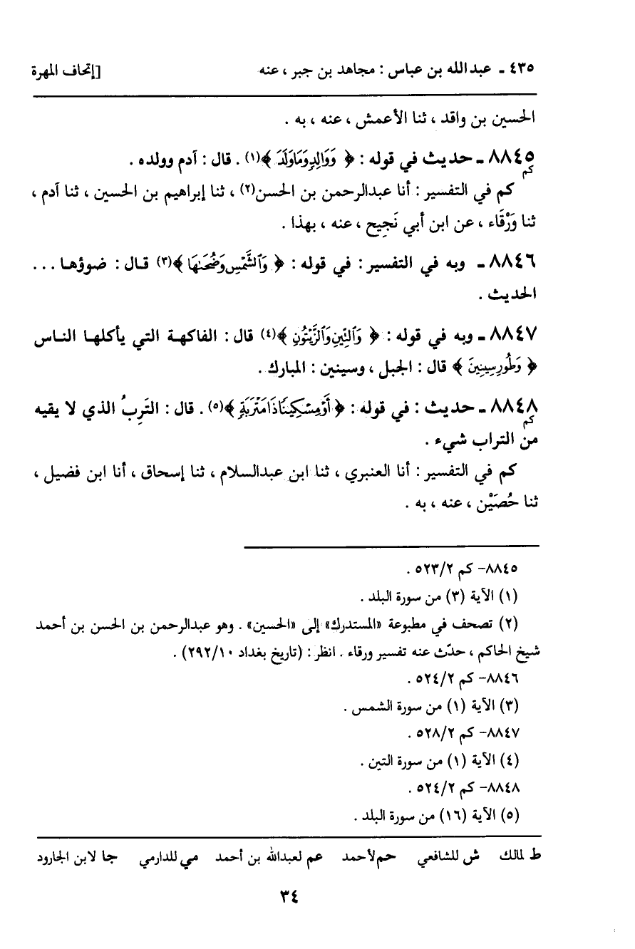 8847 - حَدِيثُ: " وَبِهِ فِي قَوْلِهِ: وَالتِّينِ وَالزَّيْتُونِ [سورة: التين، آية 1] قَالَ: الْفَاكِهَةِ الَّتِي يَأْكُلُهَا النَّاسُ، وَطُورِ سِينِينَ [سورة: التين، آية 2] قَالَ: الْجَبَلِ، وَسِينِينَ: الْمُبَارَكِ. ".
