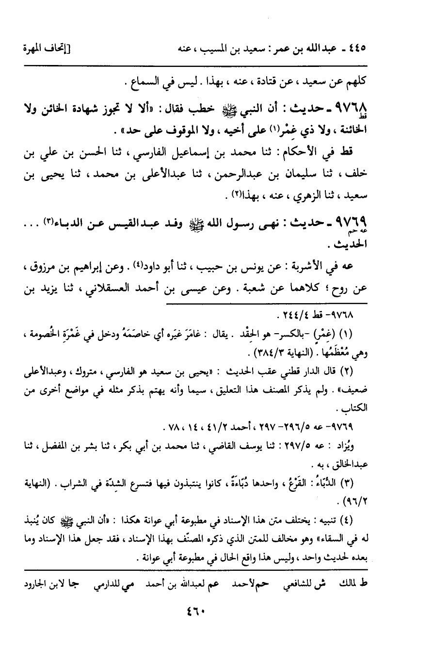 9769 - حَدِيثُ حم: " نَهَى رَسُولُ اللَّهِ صَلَّى اللَّهُ عَلَيْهِ وَسَلَّمَ وَفْدَ عَبْدِ الْقَيْسِ عَنِ الدُّبَّاءِ. . . " الْحَدِيثَ.