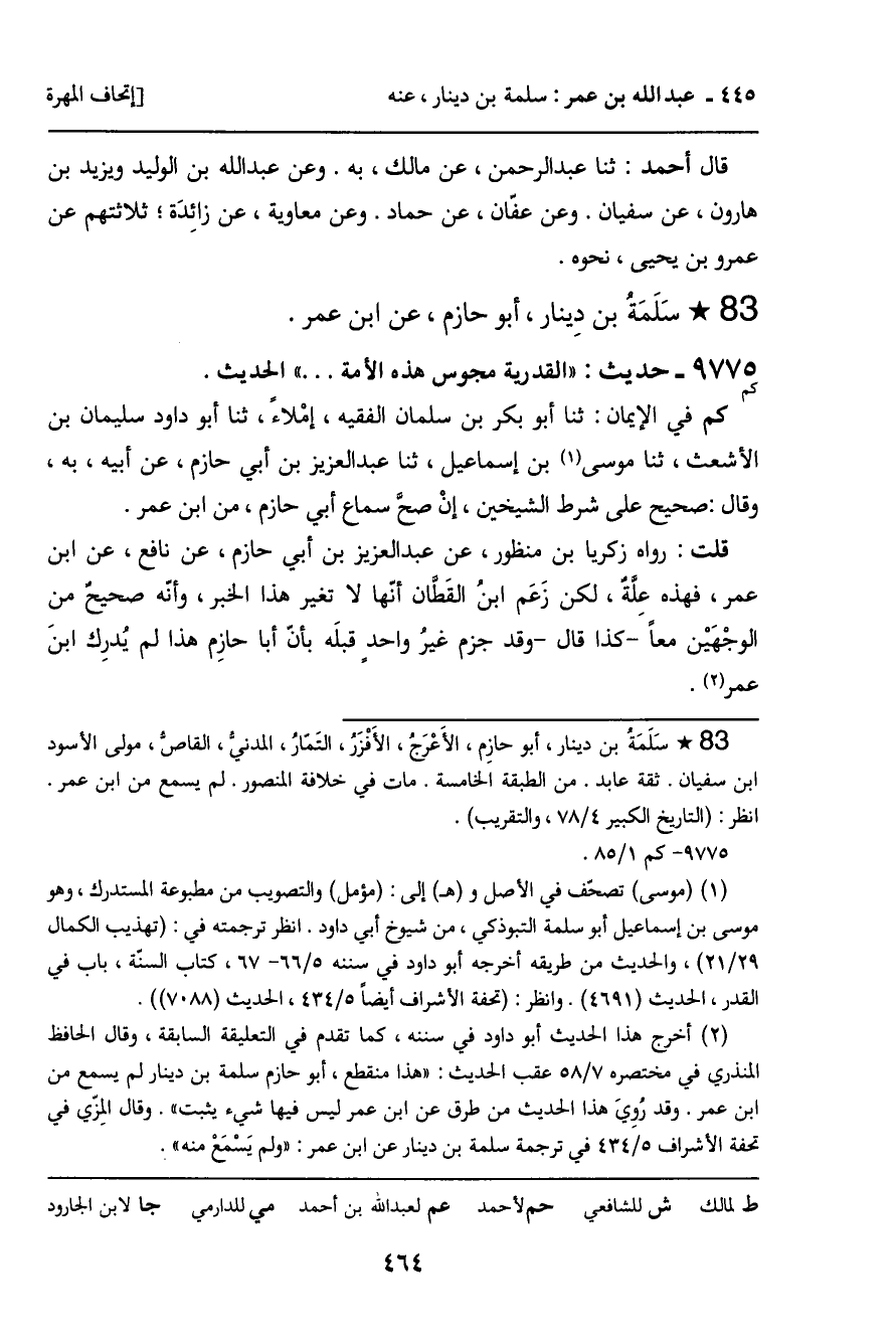 9775 - حَدِيثُ كم: " الْقَدَرِيَّةُ مَجُوسُ هَذِهِ الأُمَّةِ. . . " الْحَدِيثَ.