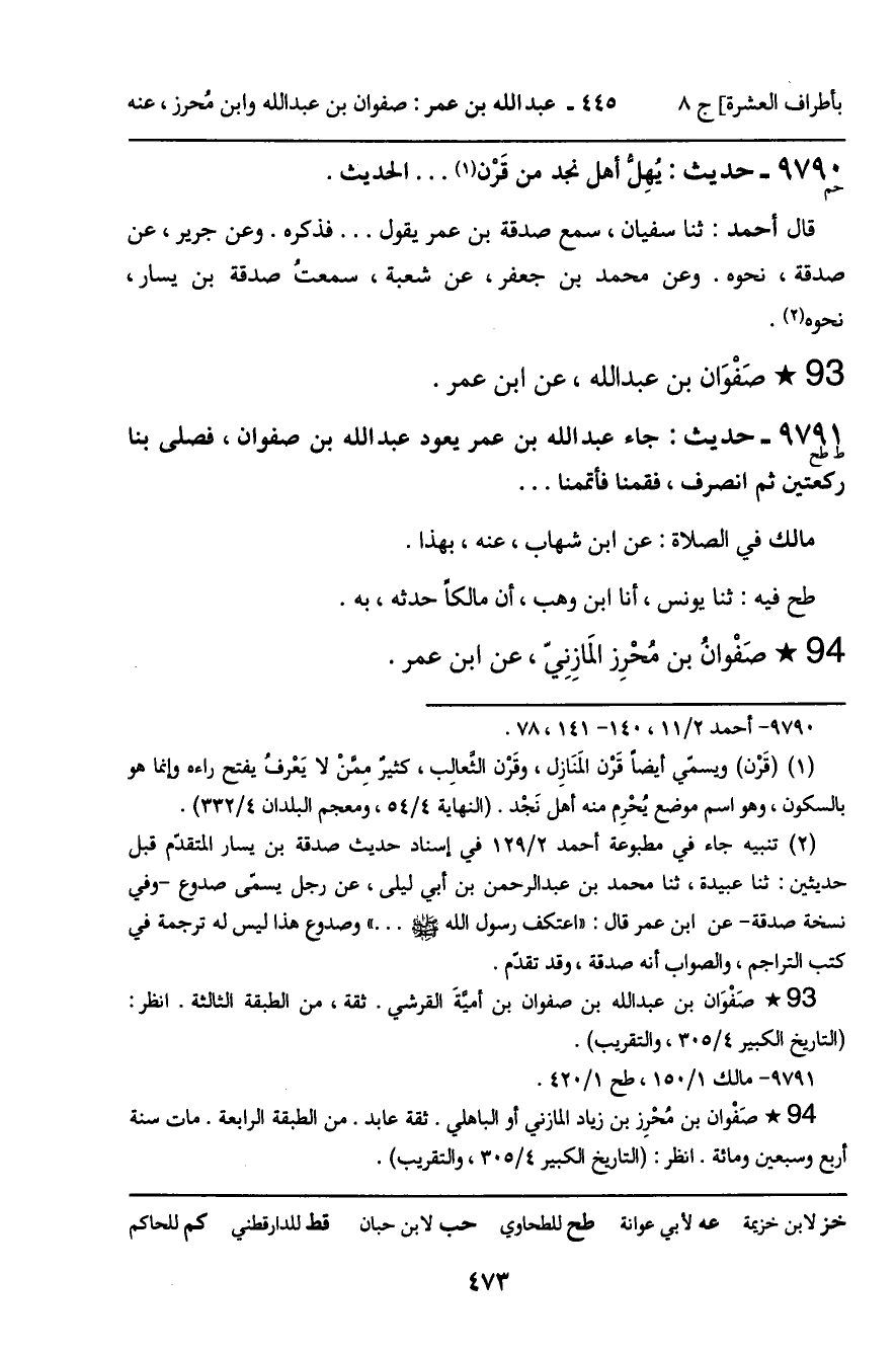 9790 - حَدِيثُ حم: " يَهِلُّ أَهْلُ نَجْدٍ مِنْ قَرْنٍ. . . " الْحَدِيثَ.