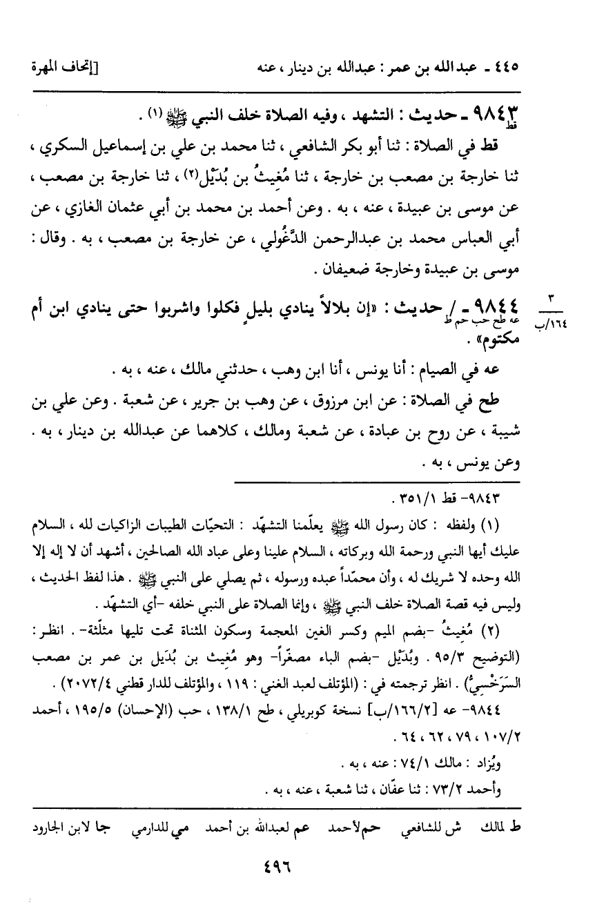 9844 - حَدِيثُ حب حم ط: " إِنَّ بِلالا يُنَادِي بِلَيْلٍ فَكُلُوا وَاشْرَبُوا حَتَّى يُنَادِيَ ابْنُ أُمِّ مَكْتُومٍ " الْحَدِيثَ.