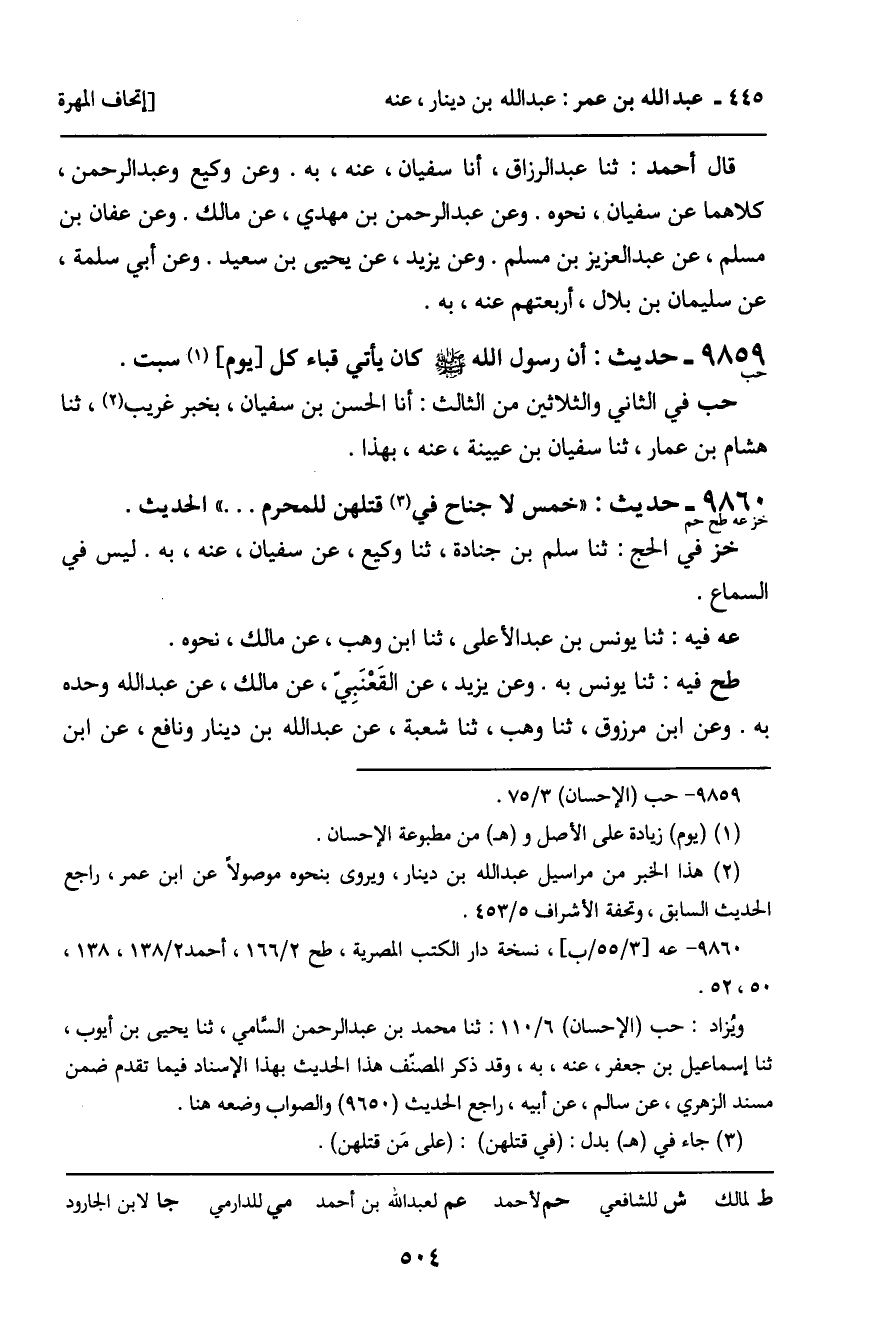 9860 - حَدِيثُ خز حم: " خَمْسٌ لا جُنَاحَ فِي قَتْلِهِنَّ لِلْمُحْرِمِ. . . " الْحَدِيثَ.
