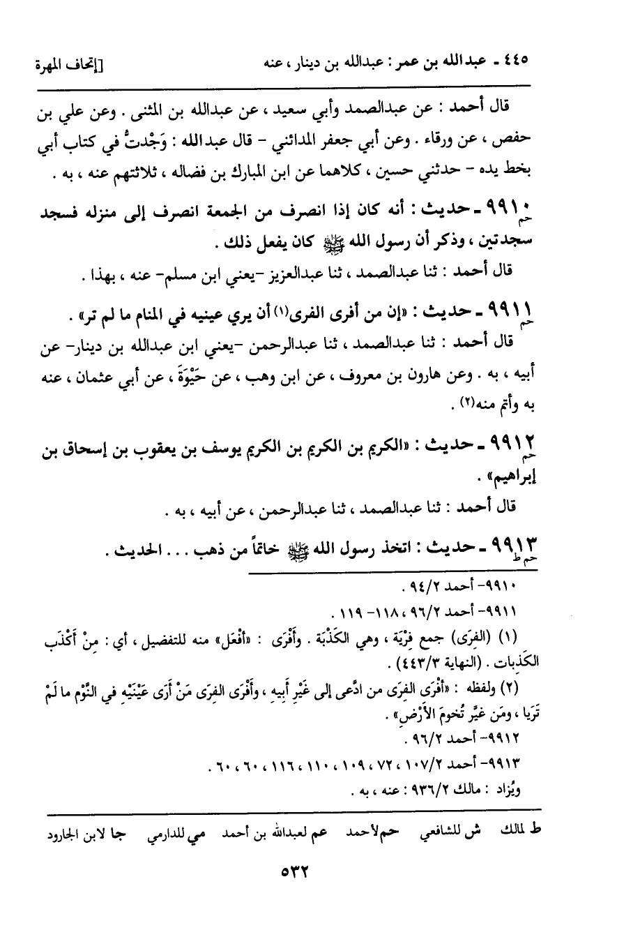 قَالَ أَحْمَدُ: ثنا عَبْدُ الصَّمَدِ، ثنا عَبْدُ الرَّحْمَنِ، يَعْنِي: ابْنَ عَبْدِ اللَّهِ بْنَ دِينَارٍ، عَنْ أَبِيهِ، بِهِ. وَعَنْ هَارُونَ بْنِ مَعْرُوفٍ، عَنِ ابْنِ وَهْبٍ، عَنْ حَيْوَةَ، عَنْ أَبِي عُثْمَانَ، عَنْهُ بِهِ وَأَتَمَّ مِنْهُ. .