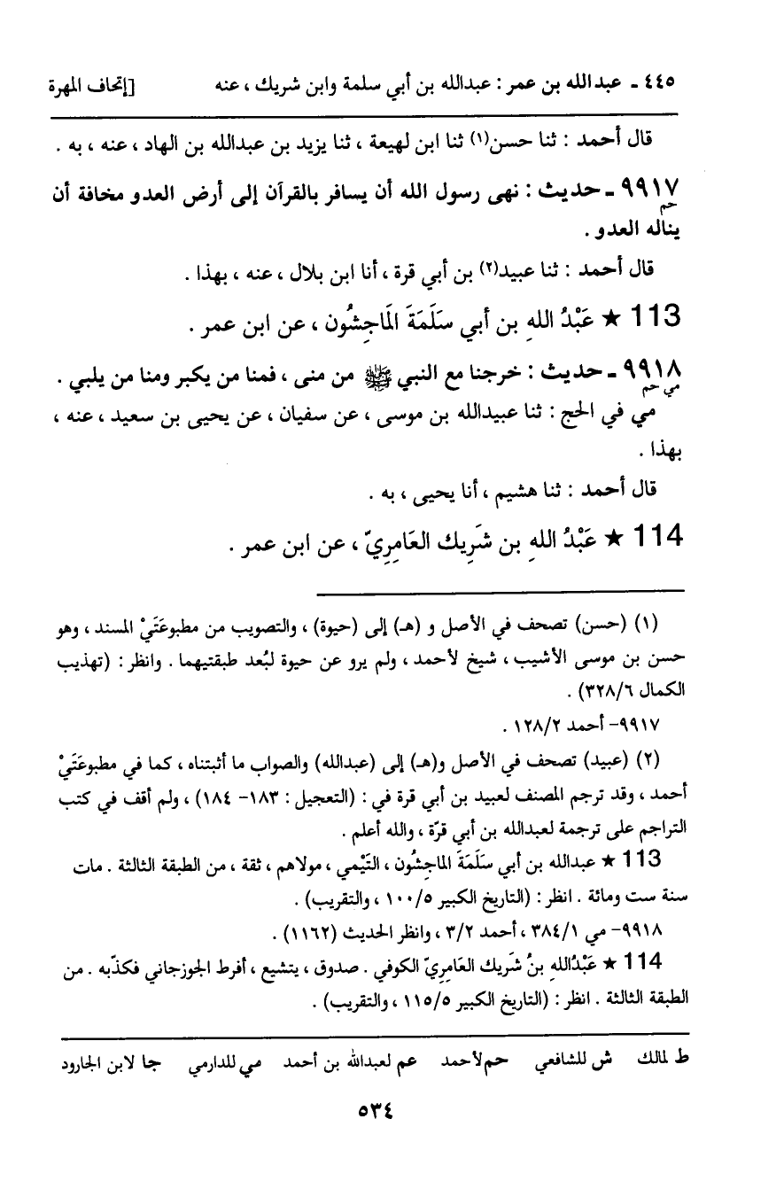 9917 - حَدِيثُ حم: " نَهَى رَسُولُ اللَّهِ صَلَّى اللَّهُ عَلَيْهِ وَسَلَّمَ أَنْ يُسَافَرَ بِالْقُرْآنِ إِلَى أَرْضِ الْعَدُوِّ مَخَافَةَ أَنْ يَنَالَهُ الْعَدُوُّ " الْحَدِيثَ.