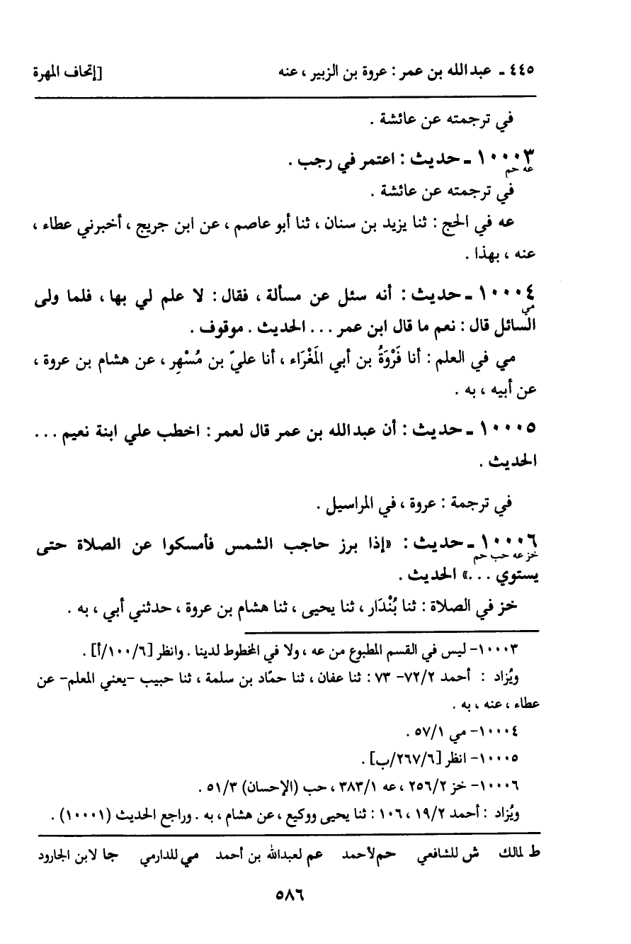 10006 - حَدِيثُ خز حب حم: " إِذَا بَرَزَ حَاجِبُ الشَّمْسِ فَأَمْسِكُوا عَنِ الصَّلاةِ حَتَّى يَسْتَوِيَ. . . " الْحَدِيثَ.