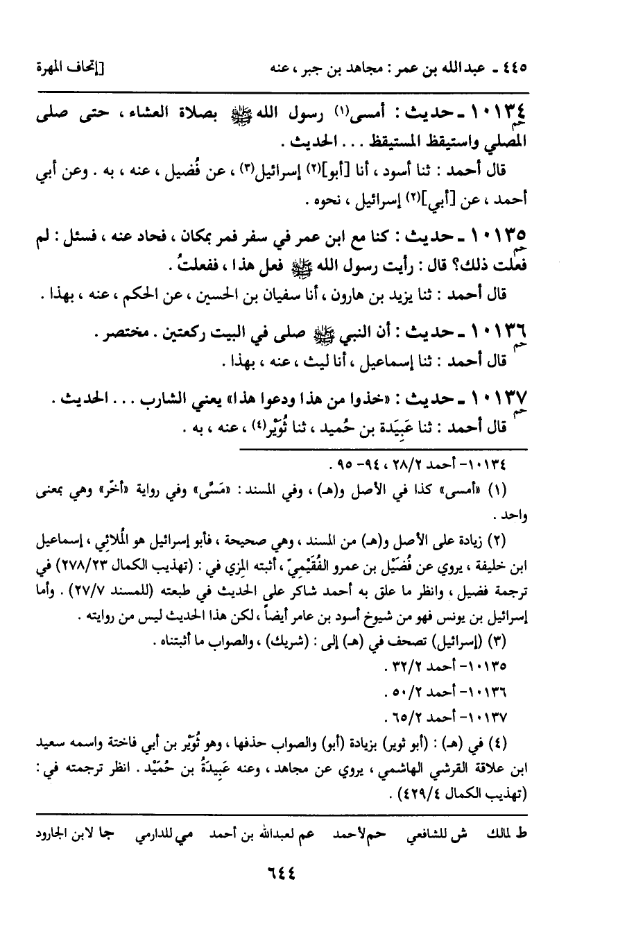 قَالَ أَحْمَدُ: ثنا أَسْوَدُ، أنا أَبُو إِسْرَائِيلَ، عَنْ فُضَيْلٍ، عَنْهُ، بِهِ. وَعَنْ أَبِي أَحْمَدَ، عَنْ أَبِي إِسْرَائِيلَ، نَحْوَهُ.
