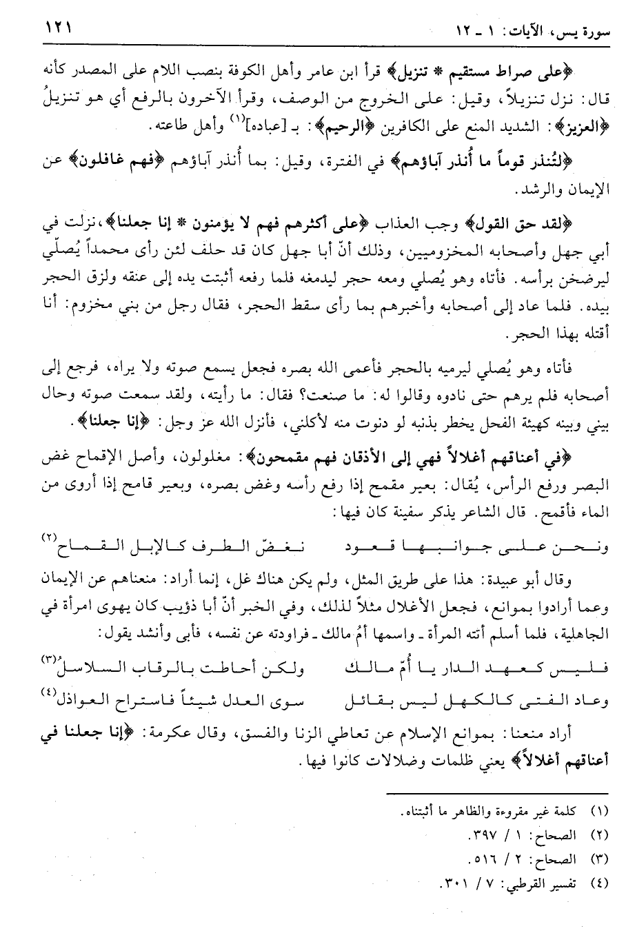 لَقَدْ حَقَّ الْقَوْلُ وجب العذاب عَلى أَكْثَرِهِمْ فَهُمْ لا يُؤْمِنُونَ. إِنَّا جَعَلْنا، نزلت في أبي جهل وأصحابه المخزوميين، وذلك