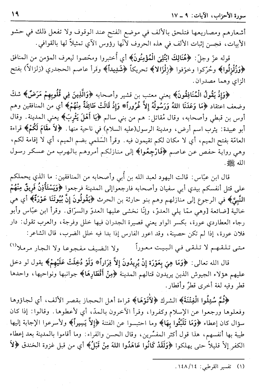 قال الله تعالى: وَما هِيَ بِعَوْرَةٍ إِنْ يُرِيدُونَ إِلَّا فِراراً. وَلَوْ دُخِلَتْ عَلَيْهِمْ يقول لو دخل عليهم هؤلاء الجيوش الذين يريدون قتالهم المدينة مِنْ أَقْطارِها جوانبها ونواحيها، واحدها قطر وفيه لغة أخرى قطر وأقطار.