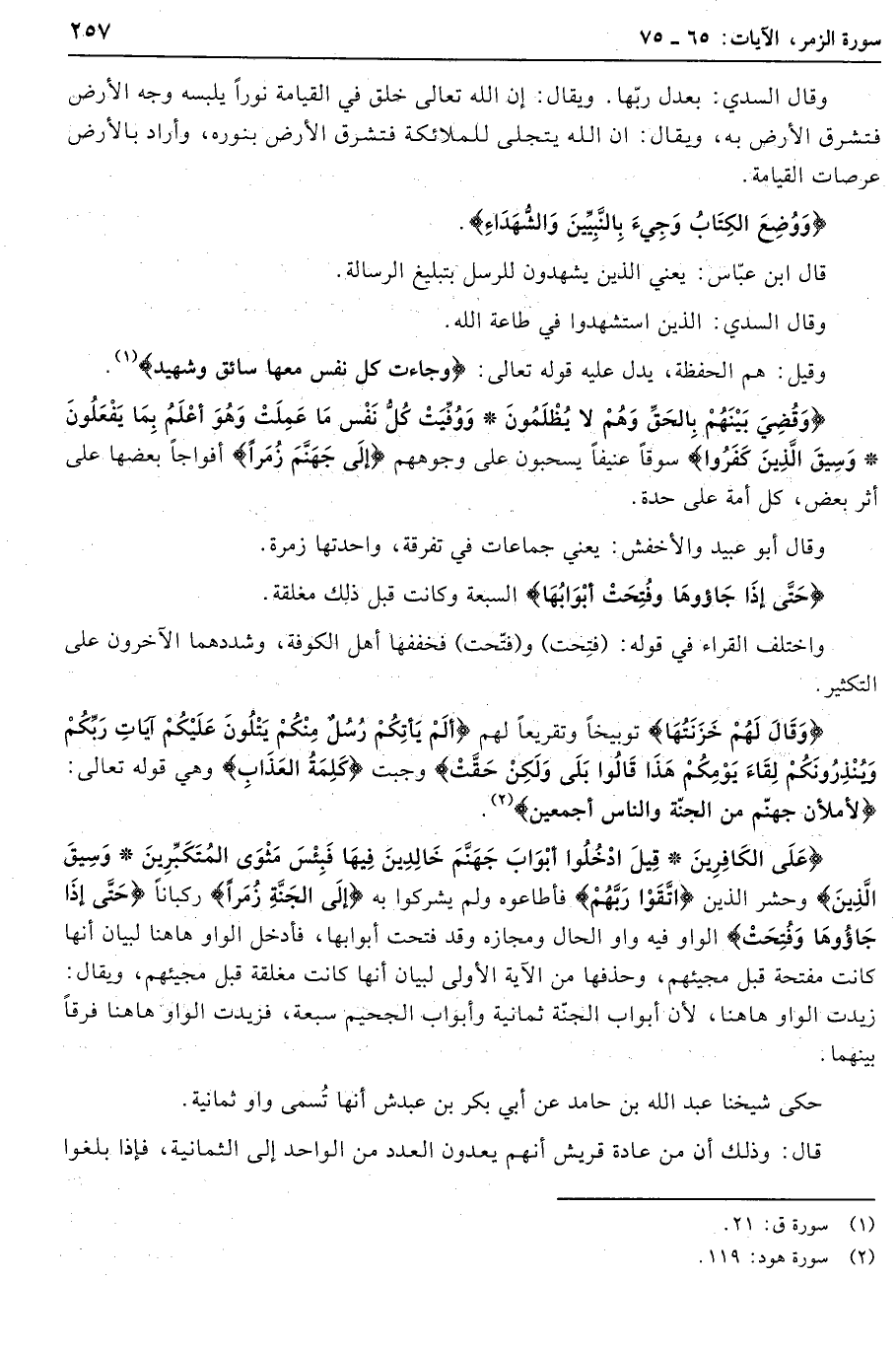 وَوُضِعَ الْكِتابُ وَجِيءَ بِالنَّبِيِّينَ وَالشُّهَداءِ.