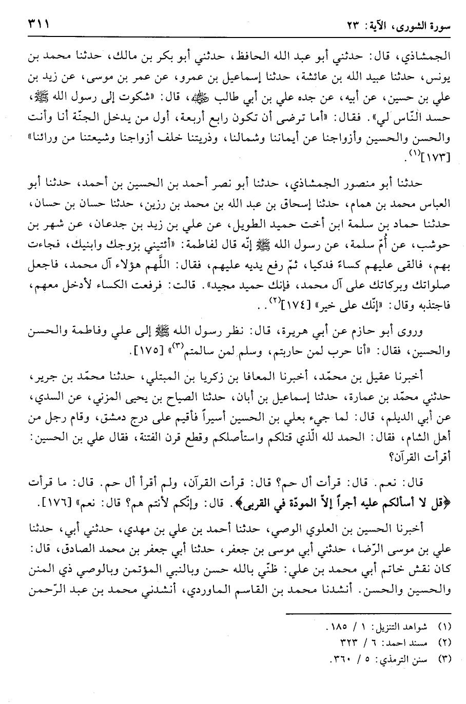قال: نعم. قال: قرأت أل حم؟ قال: قرأت القرآن، ولم أقرأ أل حم. قال: ما قرأت قُلْ لا أَسْئَلُكُمْ عَلَيْهِ أَجْراً إِلَّا الْمَوَدَّةَ فِي الْقُرْبى. قال: وإنّكم لأنتم هم؟ قال: نعم» [176] .