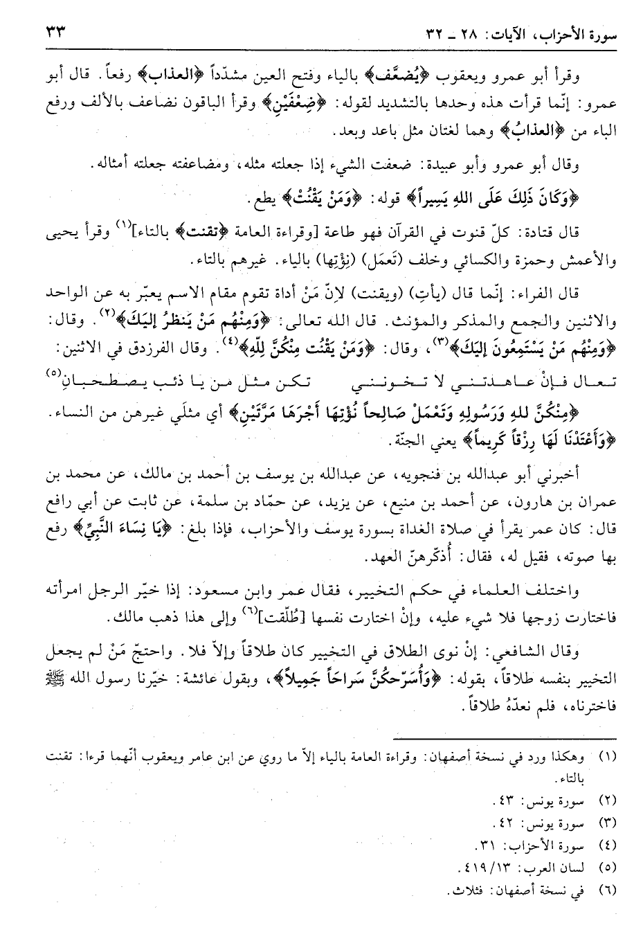 قال الفراء: إنّما قال (يَأْتِ) (ويَقْنُتْ) لأنّ من أداة تقوم مقام الاسم يعبّر به عن الواحد والاثنين والجمع والمذكر والمؤنث. قال الله تعالى: وَمِنْهُمْ مَنْ يَنْظُرُ إِلَيْكَ «2» . وقال: