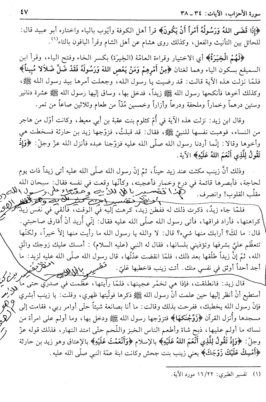 (1) تفسير الطبري: 22/ 16 مورد الآية.