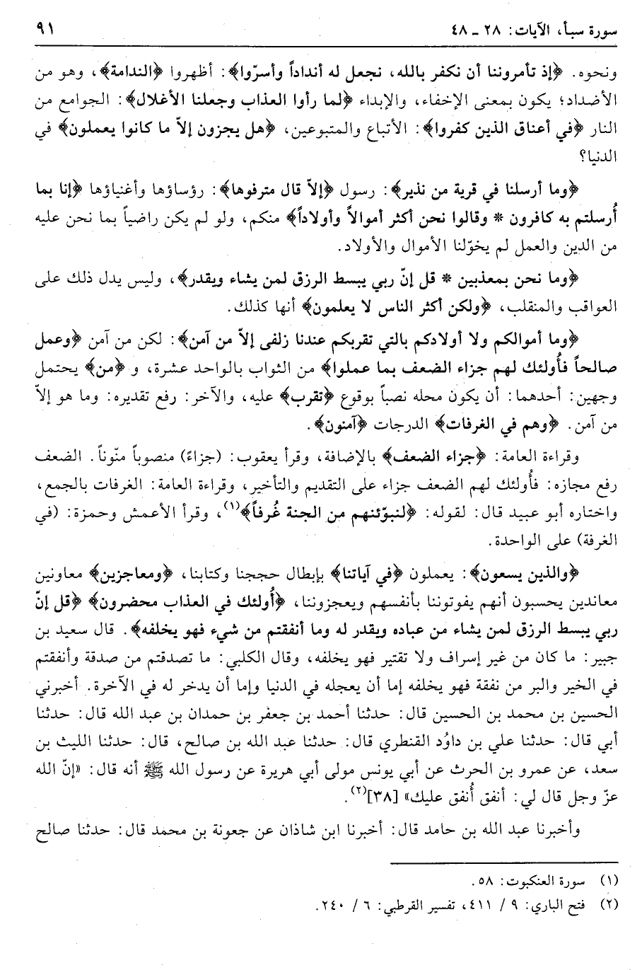 (2) فتح الباري: 9/ 411، تفسير القرطبي: 6/ 240.