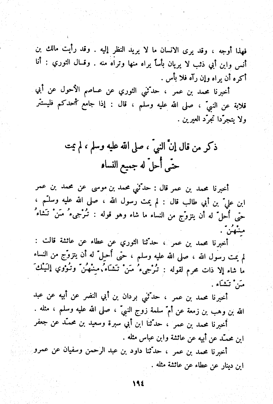 §ذِكْرُ مَنْ قَالَ: إِنَّ النَّبِيَّ صلّى الله عليه وسلم لَمْ يَمُتْ حَتَّى أُحِلَّ لَهُ جَمِيعُ النِّسَاءِ