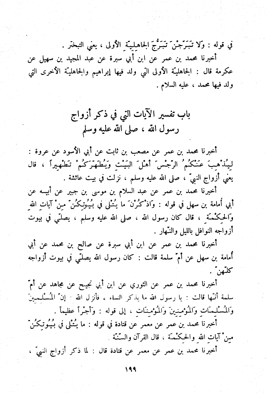 §بَابُ تَفْسِيرِ الْآيَاتِ الَّتِي فِي ذِكْرِ أَزْوَاجِ رَسُولِ اللَّهِ صلّى الله عليه وسلم