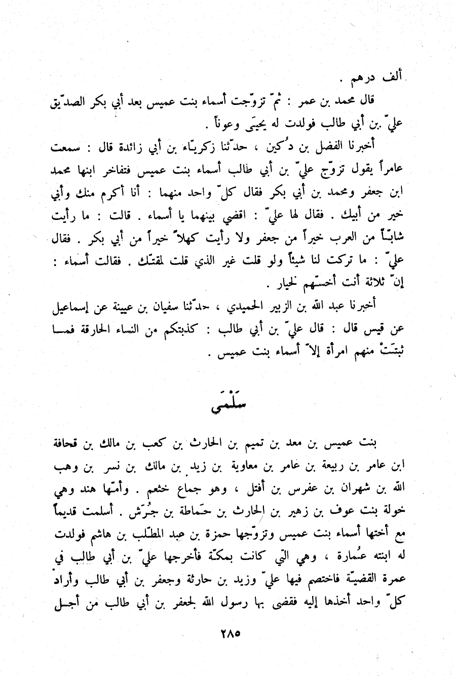 أَخْبَرَنَا عَبْدُ اللَّهِ بْنُ الزُّبَيْرِ الْحُمَيْدِيُّ، حَدَّثَنَا سُفْيَانُ بْنُ عُيَيْنَةَ، عَنْ إِسْمَاعِيلَ، عَنْ قَيْسٍ قَالَ: قَالَ عَلِيُّ بْنُ أَبِي طَالِبٍ: «§كَذَّبَتْكُمْ مِنَ النِّسَاءِ الْحَارِقَةُ فَمَا ثَبَتَتْ مِنْهُمُ امْرَأَةٌ إِلَّا أَسْمَاءُ بِنْتُ عُمَيْسٍ»