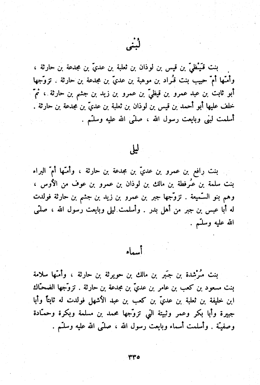 §لُبْنَى بِنْتُ قَيْظِيِّ بْنِ قَيْسِ بْنِ لَوْذَانَ بْنِ ثَعْلَبَةَ بْنِ عَدِيِّ بْنِ مَجْدَعَةَ بْنِ حَارِثَةَ وَأُمُّهَا أُمُّ حَبِيبِ بِنْتُ قُرَادِ بْنِ مَوْهِبَةَ بْنِ عَدِيِّ بْنِ مَجْدَعَةَ بْنِ حَارِثَةَ تَزَوَّجَهَا أَبُو ثَابِتِ بْنُ عَبْدِ عَمْرِو بْنِ قَيْظِيِّ بْنِ عَمْرِو بْنِ زَيْدِ بْنِ جُشَمِ بْنِ حَارِثَةَ ثُمَّ خَلَفَ عَلَيْهَا أَبُو أَحْمَدَ بْنُ قَيْسِ بْنِ لَوْذَانَ بْنِ ثَعْلَبَةَ بْنِ عَدِيِّ بْنِ مَجْدَعَةَ بْنِ حَارِثَةَ أَسْلَمَتْ لُبْنَى وَبَايَعَتْ رَسُولَ اللَّهِ صلّى الله عليه وسلم.