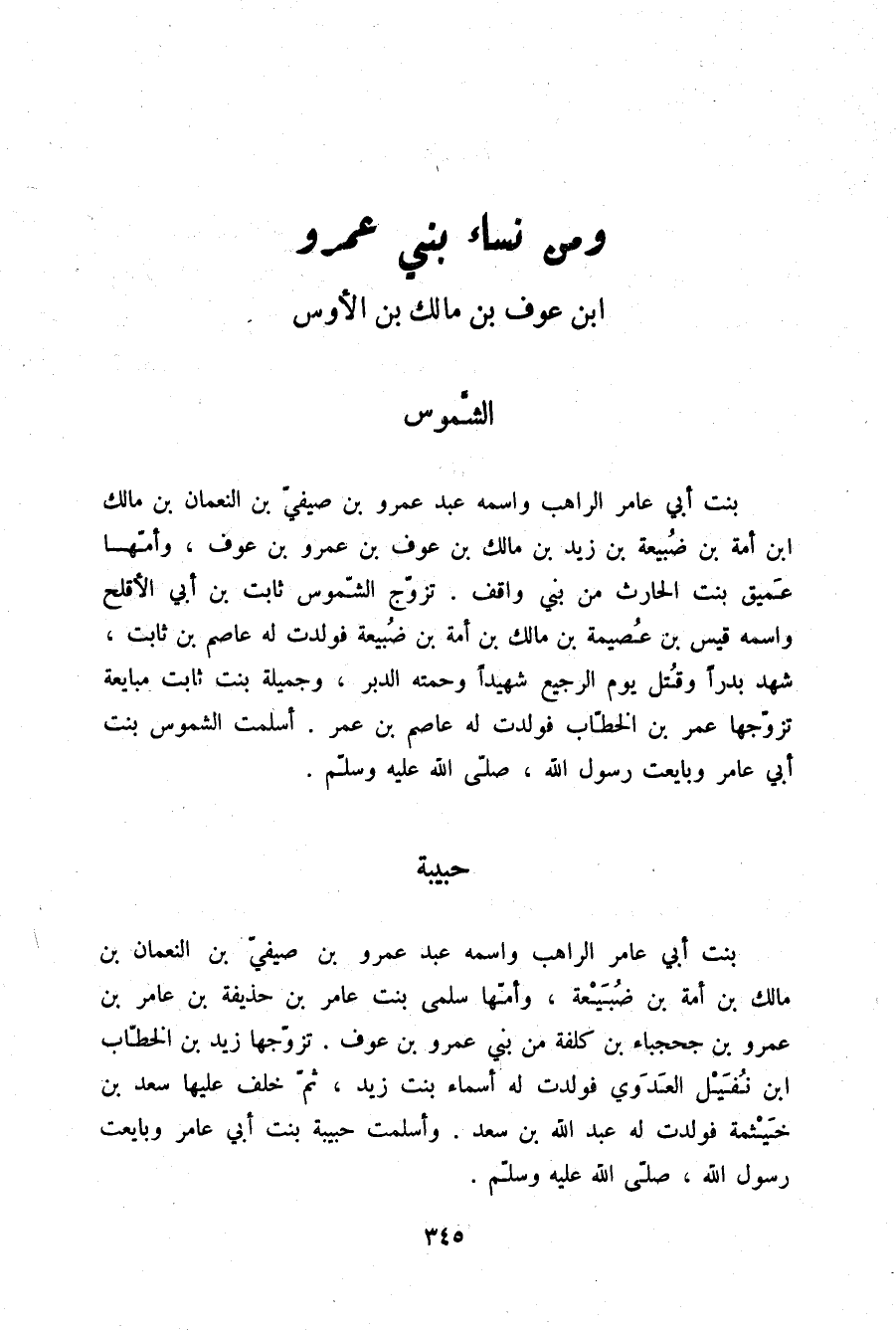 §وَمِنْ نِسَاءِ بَنِي عَمْرِو بْنِ عَوْفِ بْنِ مَالِكِ بْنِ الْأَوْسِ