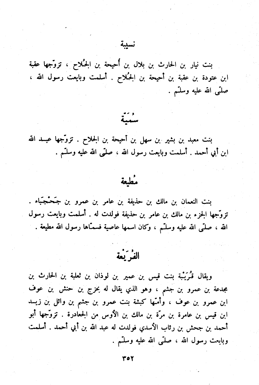 §سُمَيَّةُ بِنْتُ مَعْبَدِ بْنِ بَشِيرِ بْنِ سَهْلِ بْنِ أُحَيْحَةَ بْنِ الْجُلَاحِ تَزَوَّجَهَا عَبْدُ اللَّهِ بْنُ أَبِي أَحْمَدَ أَسْلَمَتْ وَبَايَعَتْ رَسُولَ اللَّهِ صلّى الله عليه وسلم.