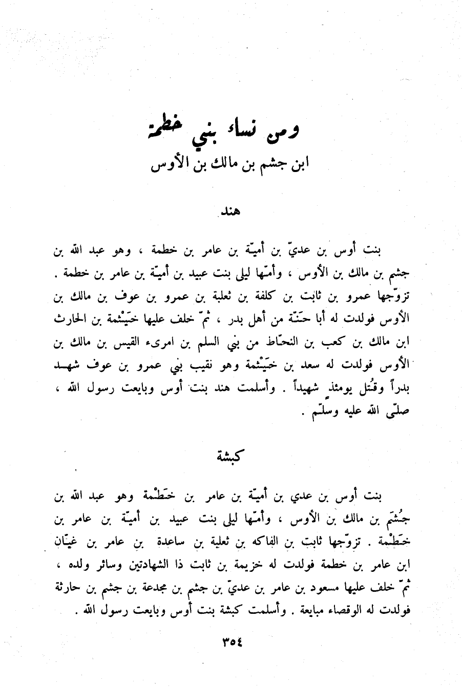 §وَمِنْ نِسَاءِ بَنِي خَطْمَةَ بْنِ جُشَمِ بْنِ مَالِكِ بْنِ الْأَوْسِ