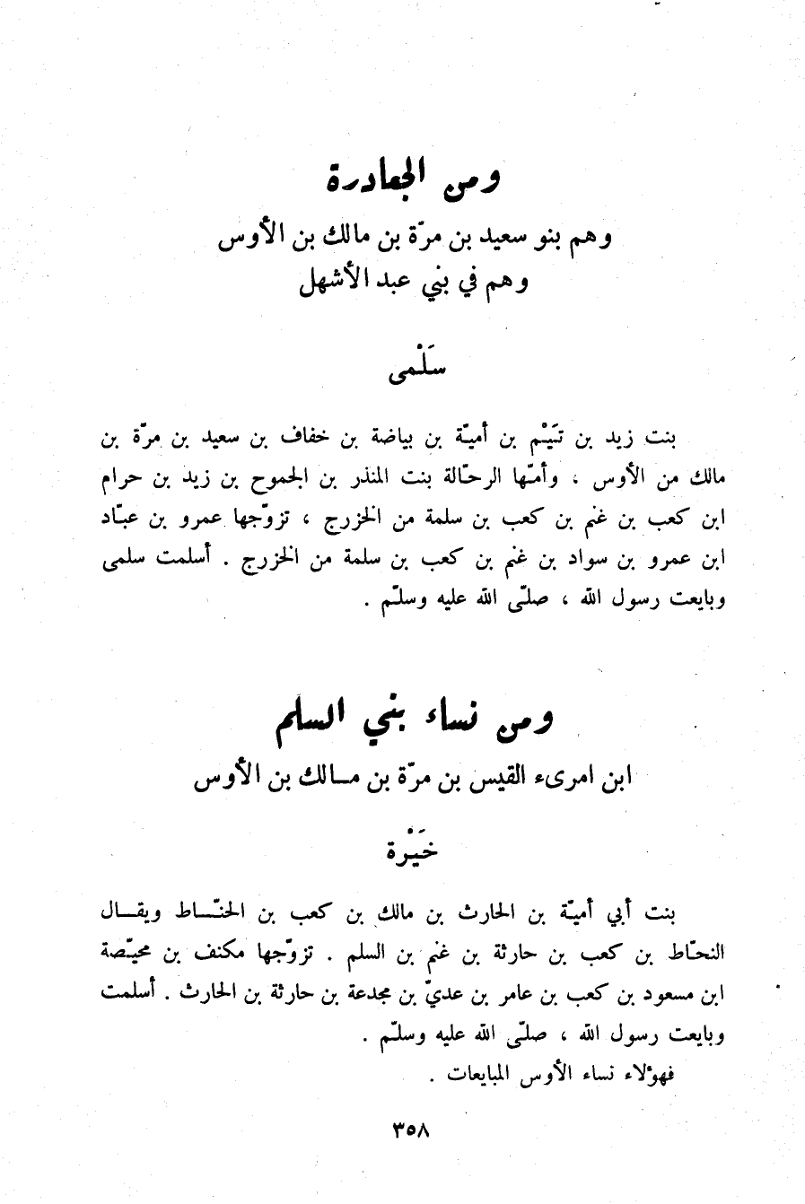 §وَمِنْ نِسَاءِ بَنِي السَّلَمِ بْنِ امْرِئِ الْقَيْسِ بْنِ مُرَّةَ بْنِ مَالِكِ بْنِ الْأَوْسِ