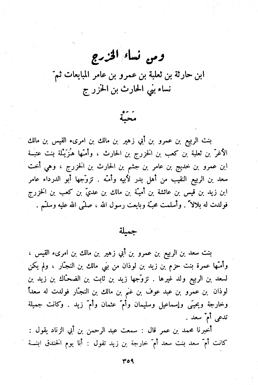 §وَمِنْ نِسَاءِ الْخَزْرَجِ بْنِ حَارِثَةَ بْنِ ثَعْلَبَةَ بْنِ عَمْرِو بْنِ عَامِرٍ الْمُبَايِعَاتِ ثُمَّ نِسَاءِ بَنِي الْحَارِثِ بْنِ الْخَزْرَجِ