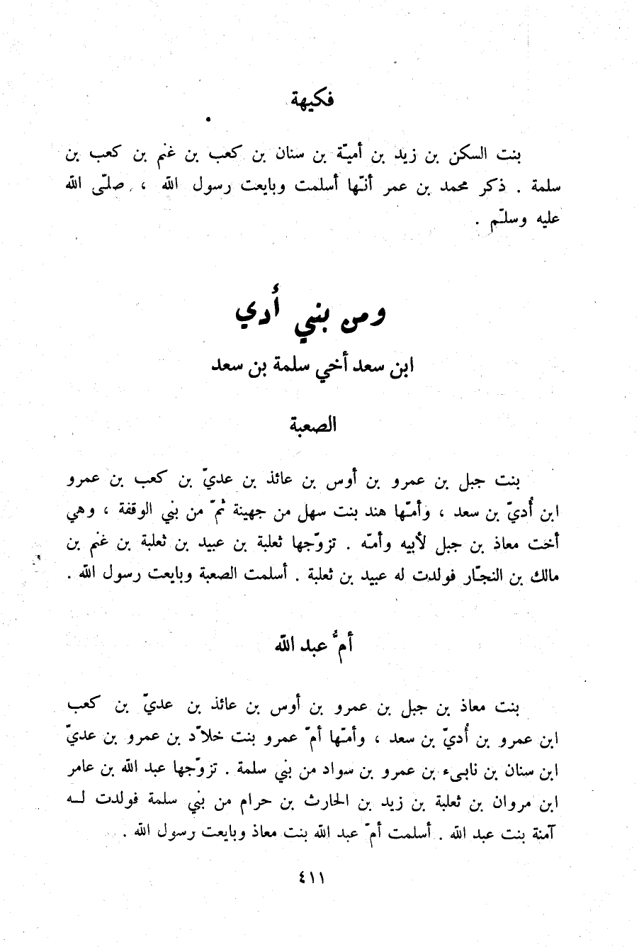 §فُكَيْهَةُ بِنْتُ السَّكَنِ بْنِ زَيْدِ بْنِ أُمَيَّةَ بْنِ سِنَانِ بْنِ كَعْبِ بْنِ غَنْمِ بْنِ كَعْبِ بْنِ سَلَمَةَ ذَكَرَ مُحَمَّدُ بْنُ عُمَرَ أَنَّهَا أَسْلَمَتْ وَبَايَعَتْ رَسُولَ اللَّهِ صلّى الله عليه وسلم.