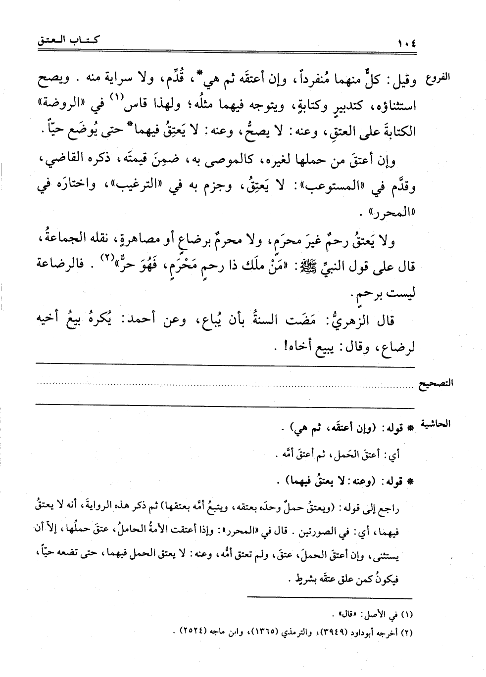 وَلَا يُعْتَقُ رَحِمٌ غَيْرُ مَحْرَمٍ وَلَا مَحْرَمٌ بِرَضَاعٍ أَوْ مُصَاهَرَةٍ، نَقَلَهُ الْجَمَاعَةُ، قَالَ: عَلَى قَوْلِ النَّبِيِّ صَلَّى اللَّهُ عَلَيْهِ وَسَلَّمَ "مَنْ مَلَكَ ذَا رَحِمٍ مَحْرَمٍ فَهُوَ حُرٌّ" 2، فَالرَّضَاعَةُ لَيْسَتْ بِرَحِمٍ.