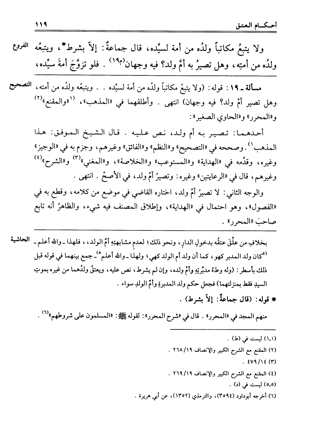 ـــــــــــــــــــــــــــــQمَسْأَلَةٌ – 19: قَوْلُهُ: "وَلَا يَتْبَعُ مُكَاتَبًا وَلَدُهُ مِنْ أَمَةٍ لِسَيِّدِهِ، وَيَتْبَعُهُ وَلَدُهُ مِنْ أَمَتِهِ، وَهَلْ تَصِيرُ أُمَّ وَلَدٍ؟ فِيهِ وَجْهَانِ". انْتَهَى. وَأَطْلَقَهُمَا في المذهب، 1والمقنع 2 والمحرر والحاوي الصغير: