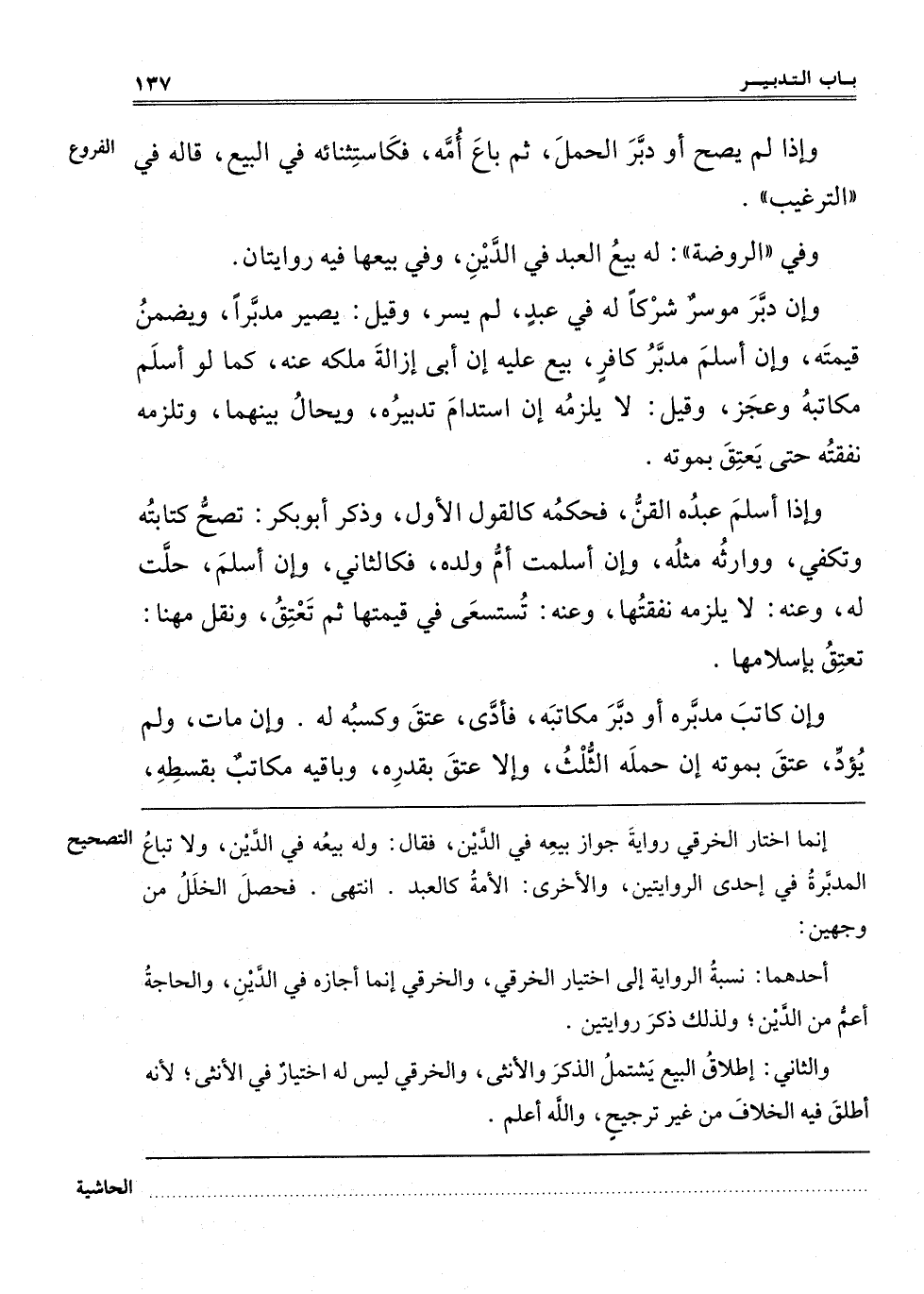 ـــــــــــــــــــــــــــــQإنَّمَا اخْتَارَ الْخِرَقِيُّ رِوَايَةَ جَوَازِ بَيْعِهِ فِي الدَّيْنِ، فَقَالَ: وَلَهُ بَيْعُهُ فِي الدَّيْنِ، وَلَا تُبَاعُ الْمُدَبَّرَةُ فِي إحْدَى الرِّوَايَتَيْنِ، وَالْأُخْرَى الْأَمَةُ كَالْعَبْدِ. انْتَهَى. فَحَصَلَ الْخَلَلُ مِنْ وَجْهَيْنِ: