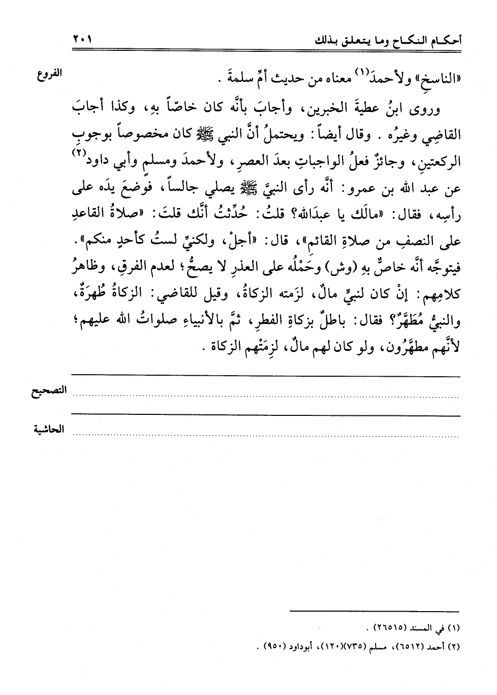 وَرَوَى ابْنُ عَطِيَّةَ الْخَبَرَيْنِ، وَأَجَابَ بِأَنَّهُ كَانَ خَاصًّا بِهِ، وَكَذَا أَجَابَ الْقَاضِي وَغَيْرُهُ. وَقَالَ أَيْضًا: وَيَحْتَمِلُ أَنَّ النَّبِيَّ صَلَّى اللَّهُ عَلَيْهِ وَسَلَّمَ كَانَ مَخْصُوصًا بِوُجُوبِ الرَّكْعَتَيْنِ، وَجَائِزٌ فِعْلُ الْوَاجِبَاتِ بَعْدَ الْعَصْرِ. وَلِأَحْمَدَ وَمُسْلِمٍ وَأَبِي دَاوُد2 عَنْ عَبْدِ اللَّهِ بْنِ عَمْرٍو أَنَّهُ رَأَى النَّبِيَّ صَلَّى اللَّهُ عَلَيْهِ وَسَلَّمَ يُصَلِّي جَالِسًا فوضع يده على رأسه، فَقَالَ: "مَا لَك يَا عَبْدَ اللَّهِ؟ " قُلْت حُدِّثْتُ "أَنَّك قُلْتَ صَلَاةُ الْقَاعِدِ عَلَى النِّصْفِ مِنْ صَلَاةِ الْقَائِمِ" قَالَ: "أَجَلْ وَلَكِنِّي لَسْتُ كَأَحَدٍ مِنْكُمْ" فَيَتَوَجَّهُ أَنَّهُ خَاصٌّ بِهِ "وش"، وَحَمْلُهُ عَلَى الْعُذْرِ لَا يَصِحُّ؛ لِعَدَمِ الْفَرْقِ، وَظَاهِرُ كَلَامِهِمْ إنْ كَانَ لِنَبِيٍّ مَالٌ لَزِمَتْهُ الزَّكَاةُ، وَقِيلَ لِلْقَاضِي: الزَّكَاةُ طُهْرَةٌ وَالنَّبِيُّ مُطَهَّرٌ، فَقَالَ: بَاطِلٌ بِزَكَاةِ الْفِطْرِ، ثُمَّ بِالْأَنْبِيَاءِ صَلَوَاتُ اللَّهِ عَلَيْهِمْ لِأَنَّهُمْ مُطَهَّرُونَ، وَلَوْ كَانَ لَهُمْ مال لزمتهم الزكاة.