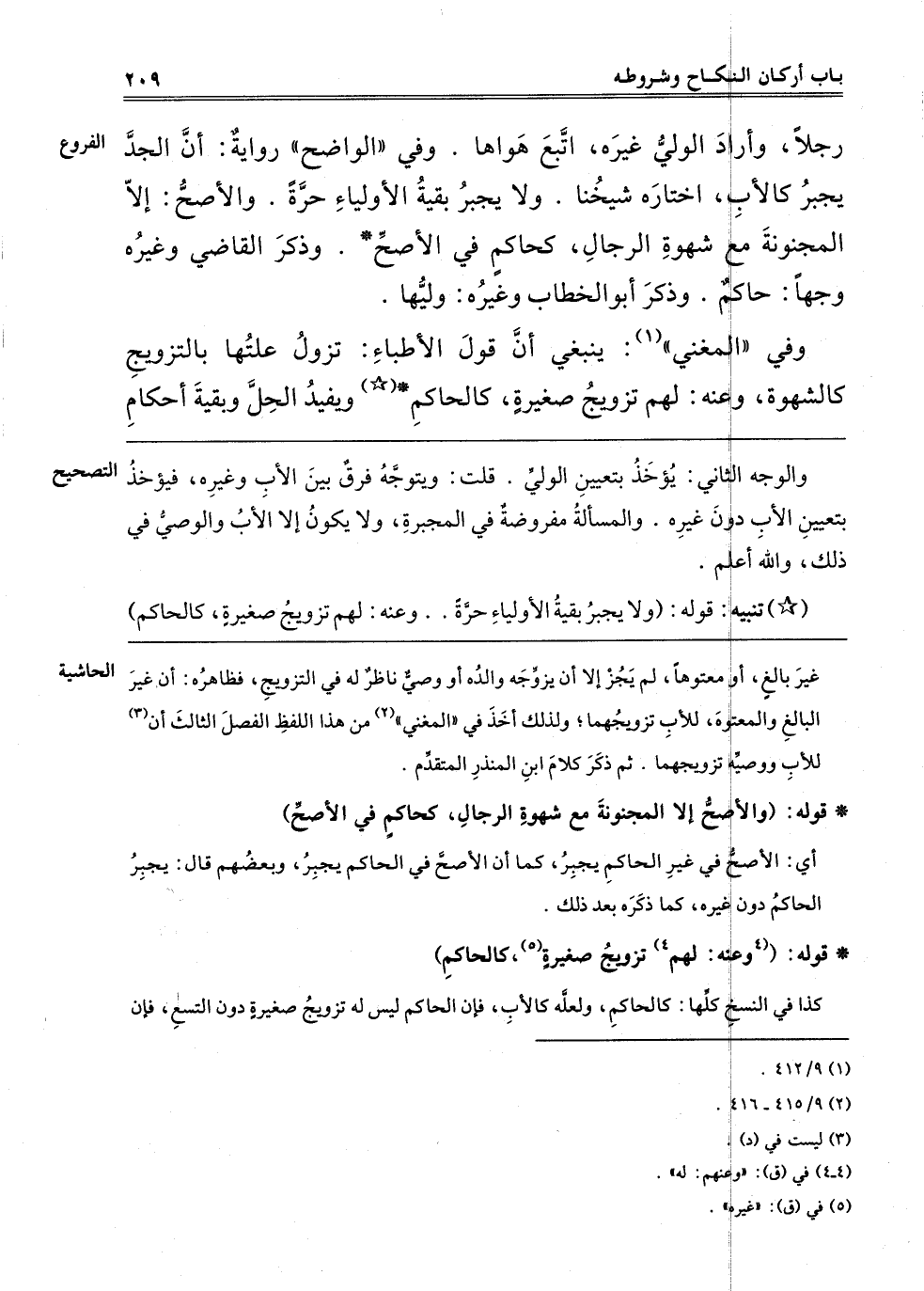وَفِي الْمُغْنِي1: يَنْبَغِي أَنَّ قَوْلَ الْأَطِبَّاءِ تَزُولُ عِلَّتُهَا بِالتَّزْوِيجِ كَالشَّهْوَةِ، وَعَنْهُ: لَهُمْ تَزْوِيجُ صَغِيرَةٍ كَالْحَاكِمِ وَيُفِيدُ الْحِلُّ وبقية أحكام