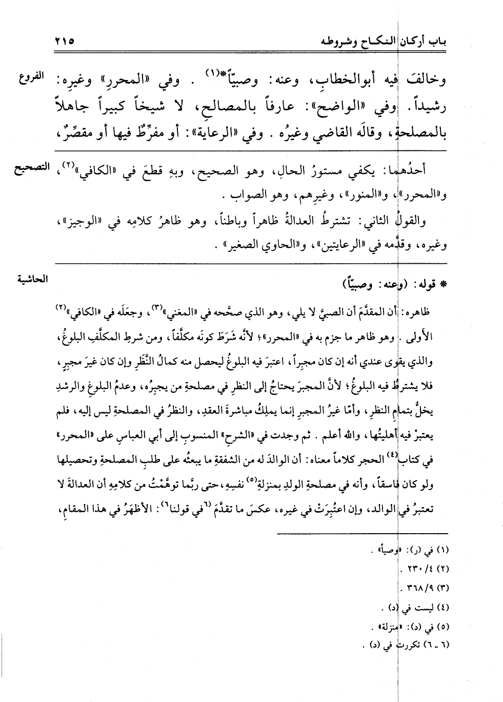 وَخَالَفَ فِيهِ أَبُو الْخَطَّابِ، وَعَنْهُ: وَصَبِيًّا1، وَفِي الْمُحَرَّرِ وَغَيْرِهِ: رَشِيدًا. وَفِي الْوَاضِحِ: عَارِفًا بِالْمَصَالِحِ لَا شَيْخًا كَبِيرًا جَاهِلًا بِالْمَصْلَحَةِ وَقَالَهُ الْقَاضِي وَغَيْرُهُ، وَفِي الرِّعَايَةِ: أَوْ مُفَرِّطًا فِيهَا أَوْ مقصر،