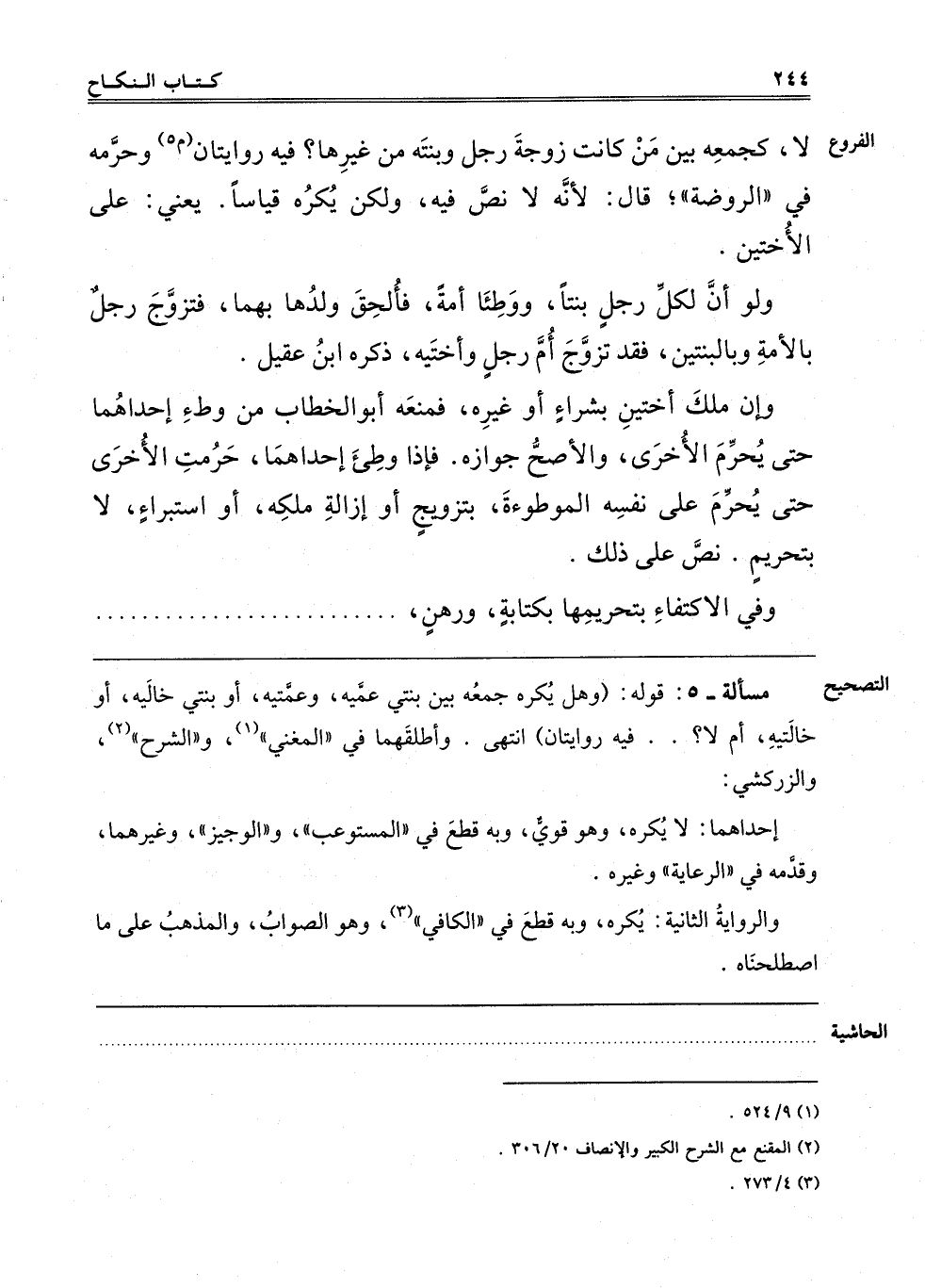 ـــــــــــــــــــــــــــــQمَسْأَلَةٌ – 5: قَوْلُهُ: "وَهَلْ يُكْرَهُ جَمْعُهُ بَيْنَ بِنْتَيْ عَمَّيْهِ وَعَمَّتَيْهِ أَوْ بِنْتَيْ خَالَيْهِ أَوْ خَالَتَيْهِ أَمْ لَا؟ ... فِيهِ رِوَايَتَانِ". انْتَهَى. وَأَطْلَقَهُمَا فِي الْمُغْنِي1 وَالشَّرْحِ2 وَالزَّرْكَشِيُّ:
