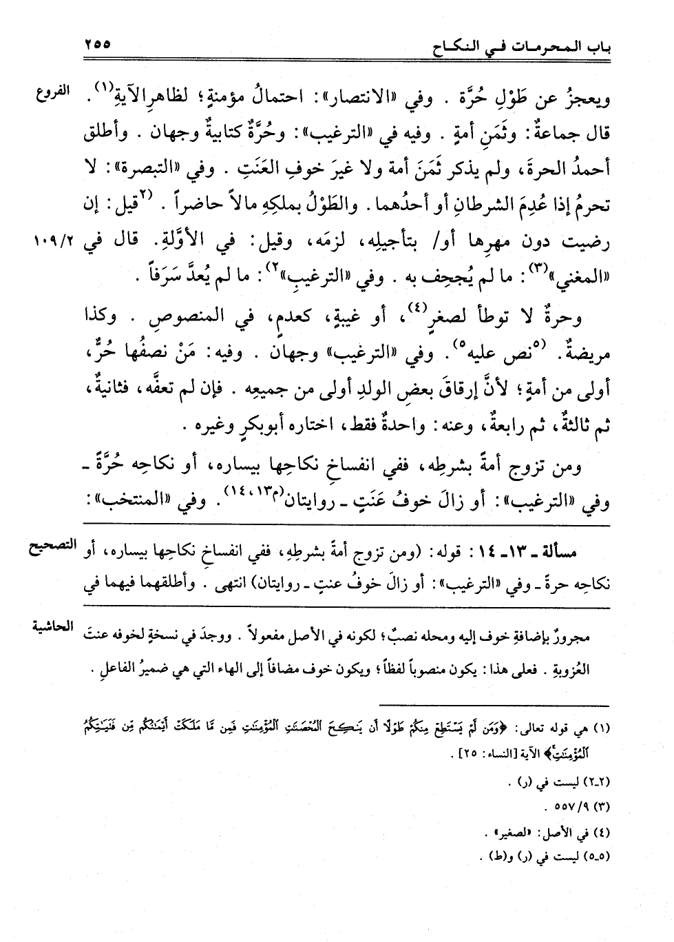 ـــــــــــــــــــــــــــــQمسألة – 13- 14: قَوْلُهُ: "وَمَنْ تَزَوَّجَ أَمَةً بِشَرْطِهِ فَفِي انْفِسَاخِ نِكَاحِهَا بِيَسَارِهِ أَوْ نِكَاحِهِ حُرَّةً وَفِي التَّرْغِيبِ أَوْ زَوَالِ خَوْفِ عَنَتٍ رِوَايَتَانِ". انْتَهَى. وَأَطْلَقَهُمَا فيها في