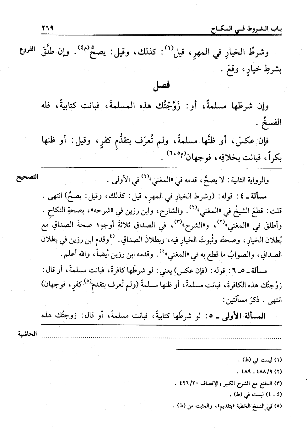 4وقدم ابن رزين في بطلان الصداق، والصواب ما قطع به في "المغني"4 وقدمه ابن رزين أيضا، والله أعلم.