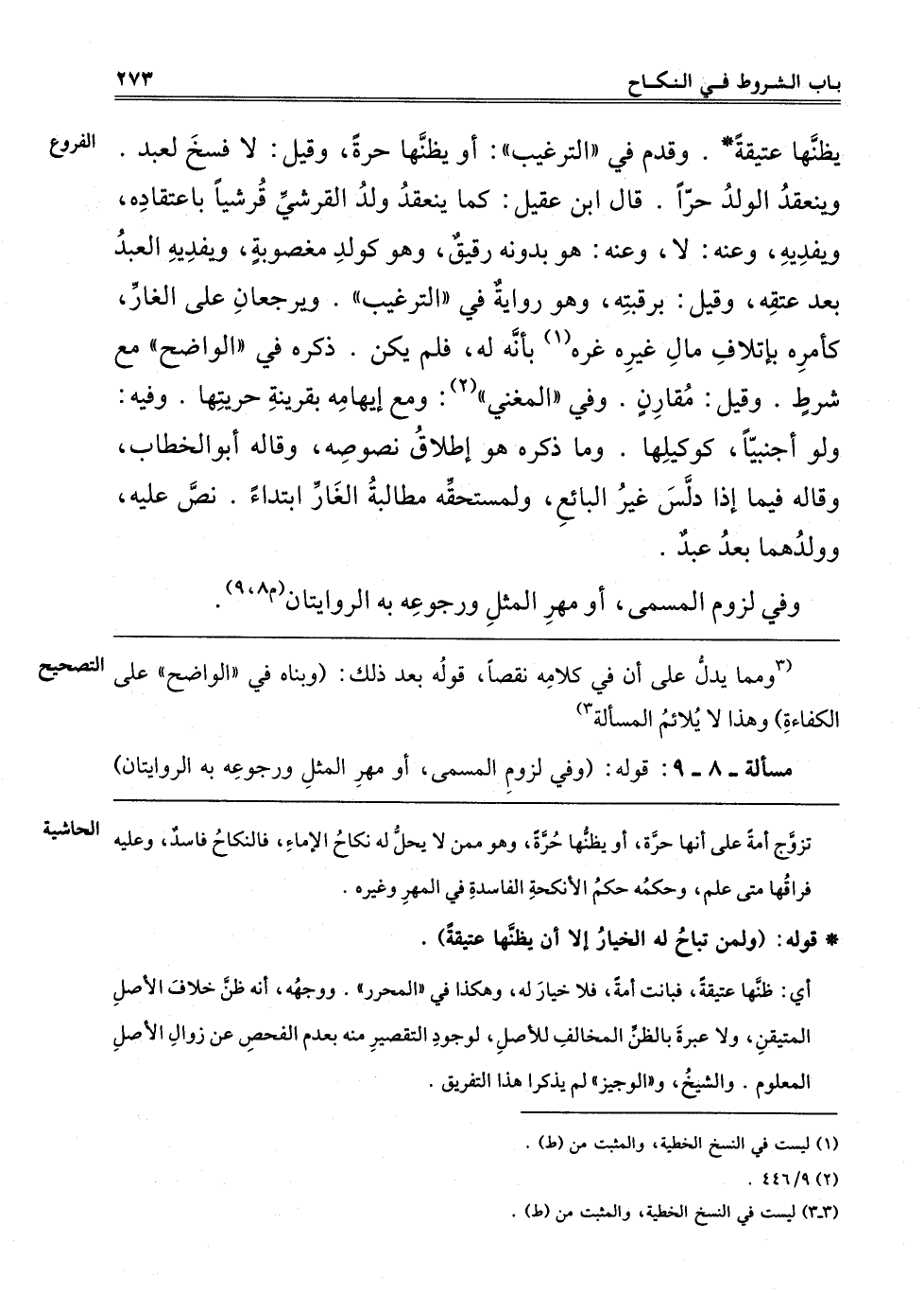 ـــــــــــــــــــــــــــــQ3وَمِمَّا يَدُلُّ عَلَى أَنَّ فِي كَلَامِهِ نَقْصًا قَوْلُهُ بَعْدَ ذَلِكَ: "وَبَنَاهُ فِي الْوَاضِحِ عَلَى الكفاءة". وهذا لا يلائم المسألة3.