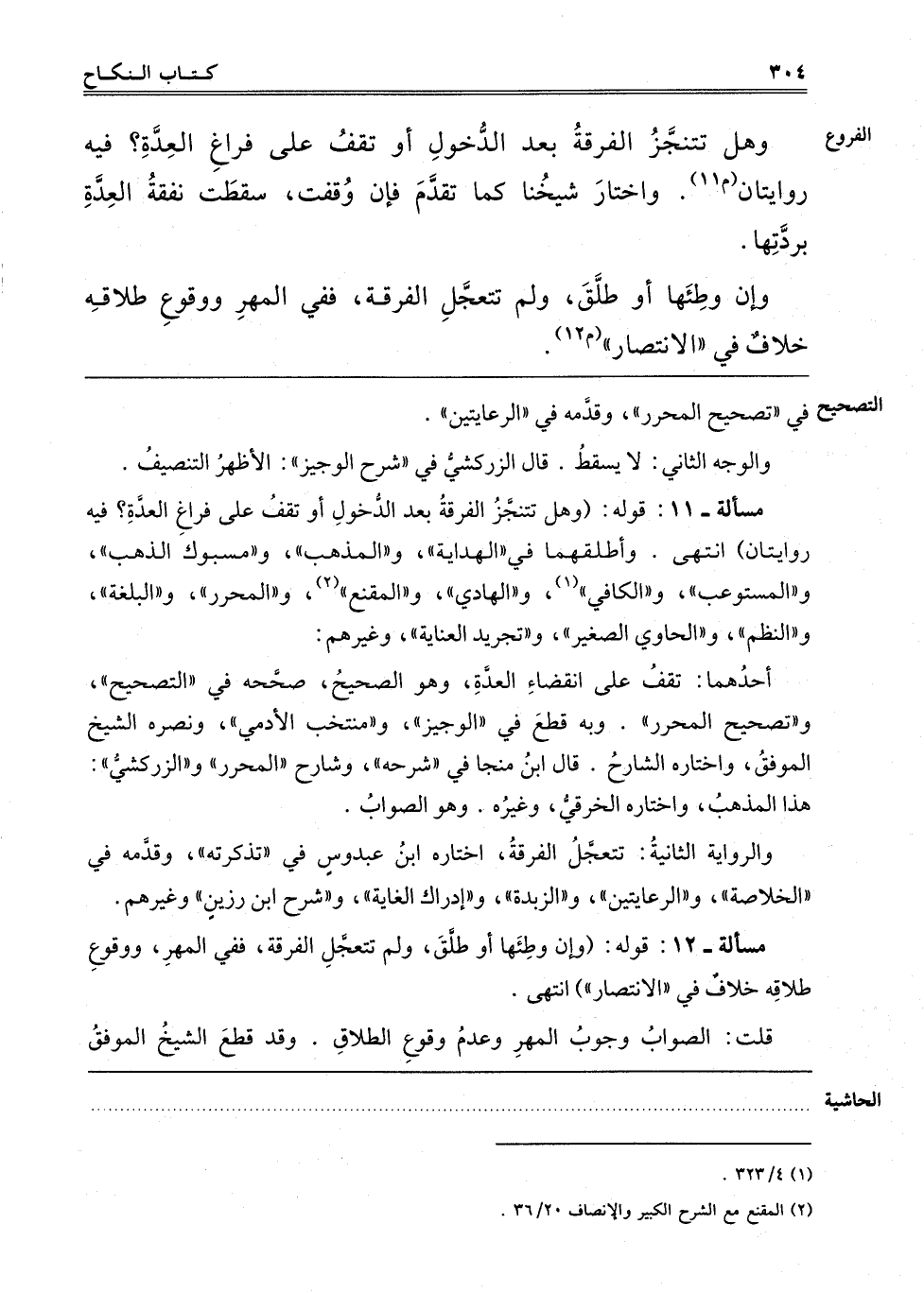 ـــــــــــــــــــــــــــــQفِي تَصْحِيحِ الْمُحَرَّرِ، وَقَدَّمَهُ فِي الرِّعَايَتَيْنِ.