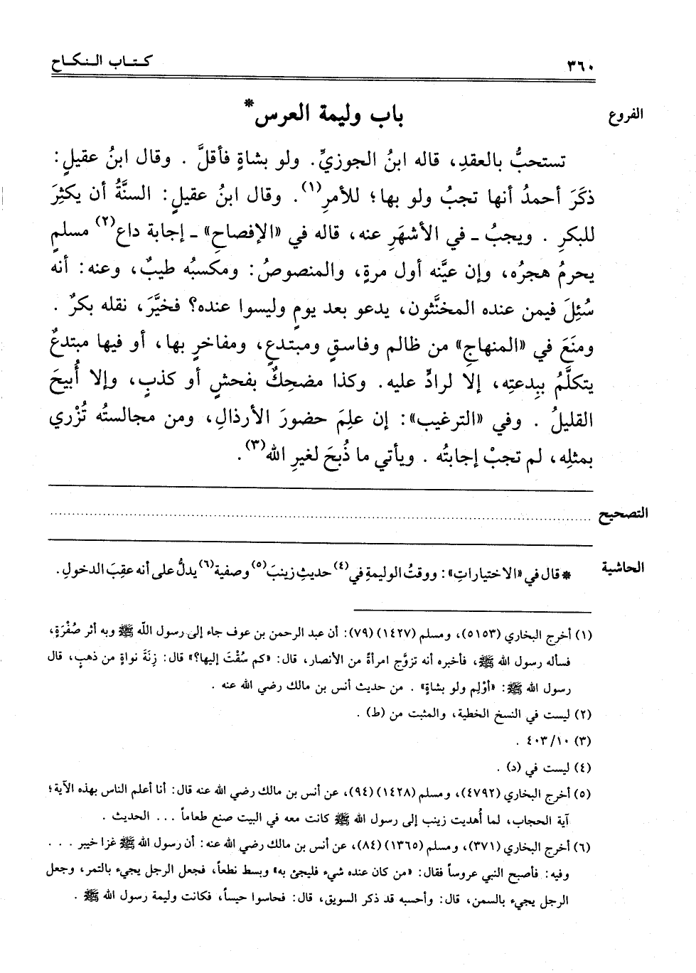 1 أخرج البخاري "5153"، ومسلم "1427" "79": أن عبد الرحمن بن عوف جاء إلَى رَسُولِ اللَّهِ صَلَّى اللَّهُ عَلَيْهِ وَسَلَّمَ وبه أثر صفرة، فسأله رَسُولِ اللَّهِ صَلَّى اللَّهُ عَلَيْهِ وَسَلَّمَ، فَأَخْبَرَهُ أنه تزوج امرأة من الأنصار، قال: "كم سقت إليها؟ " قال: "زنة نواة من ذهب، قَالَ رَسُولُ اللَّهِ صَلَّى اللَّهُ عَلَيْهِ وَسَلَّمَ: "أولم ولو بشاة". من حديث أنس بن مالك رضي الله عنه.
