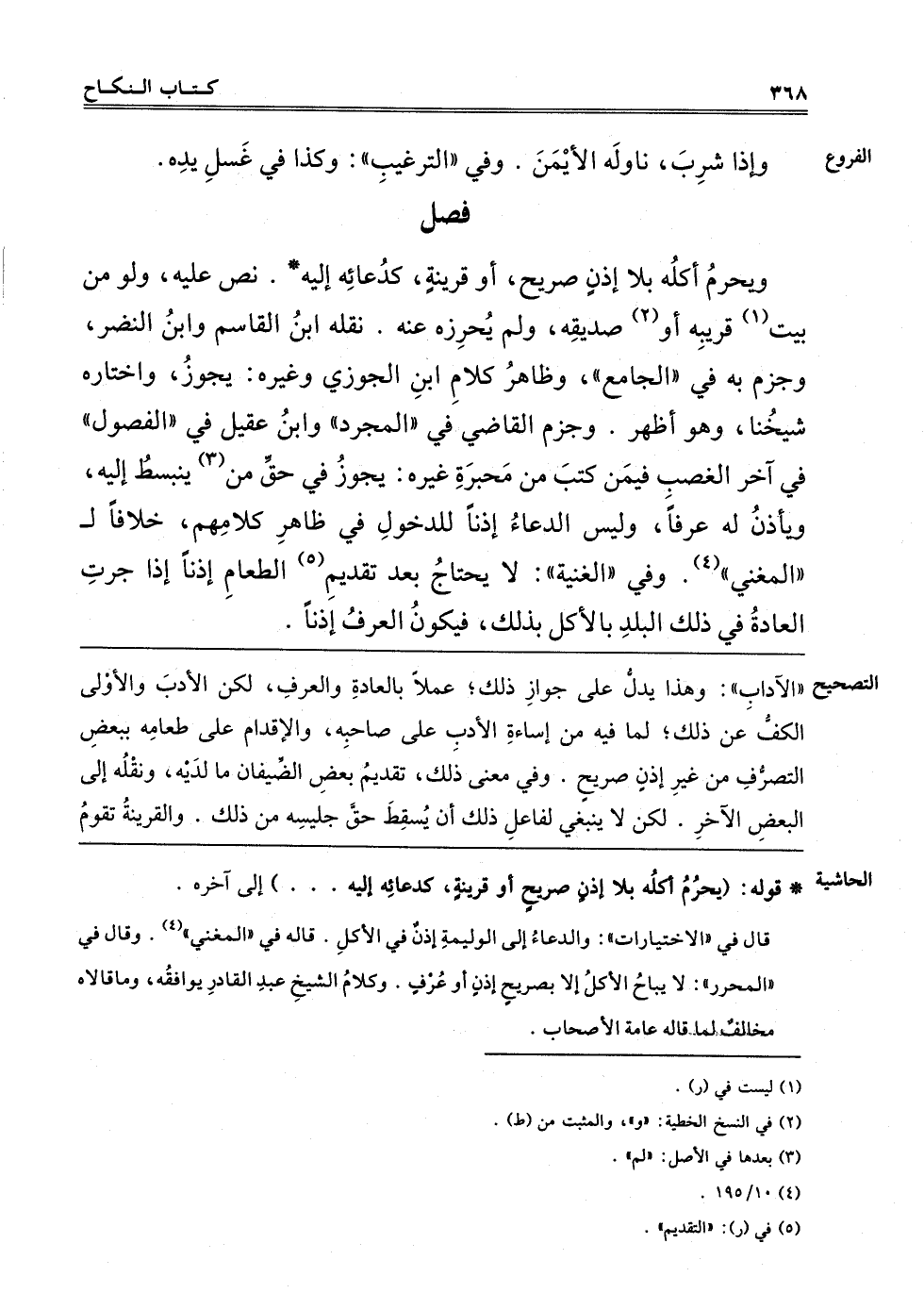 فصل وَيُحَرَّمُ أَكْلُهُ بِلَا إذْنٍ صَرِيحٍ أَوْ قَرِينَةِ، كَدُعَائِهِ إلَيْهِ.