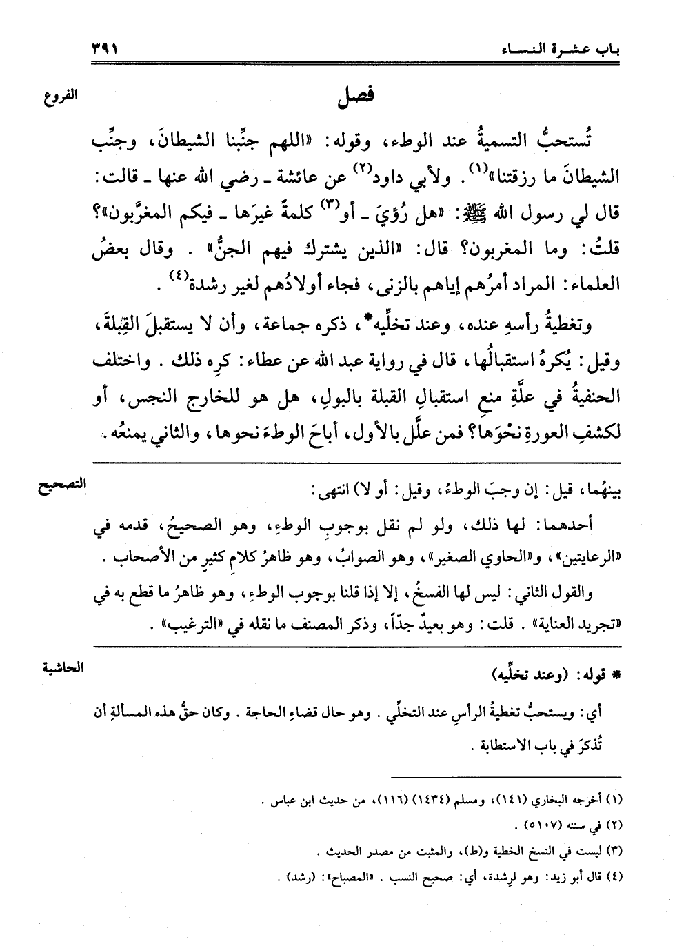فصل تُسْتَحَبُّ التَّسْمِيَةُ عِنْدَ الْوَطْءِ،
