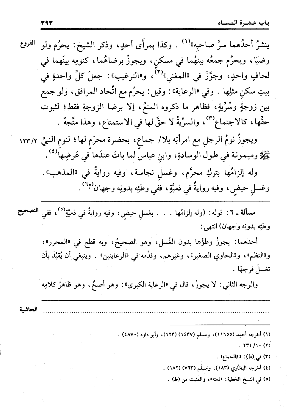 ـــــــــــــــــــــــــــــQمَسْأَلَةٌ 6-: قَوْلُهُ: "وَلَهُ إلْزَامُهَا ... بِغُسْلِ حَيْضٍ، وَفِيهِ رِوَايَةٌ فِي ذِمِّيَّةٍ5، فَفِي وَطْئِهِ بِدُونِهِ وَجْهَانِ" انْتَهَى: